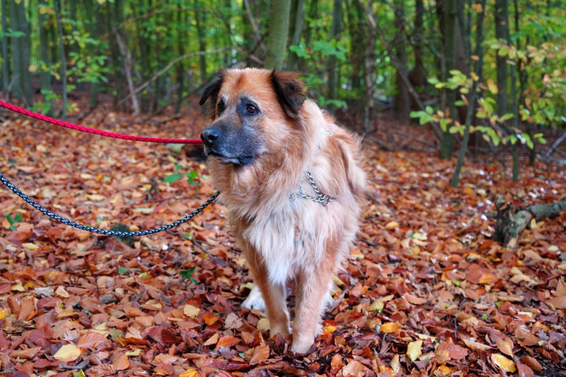 An der Leine läuft Odin ruhig und zuverlässig. Begegnungen mit anderen Hunden meistert er souverän, solange genügend Abstand bleibt. Mit Hündinnen versteht er sich bestens – charmant, wie er ist, lässt er ihnen gern den Vortritt. Nur bei anderen Rüden zeigt er, dass er weiß, wie groß er ist.