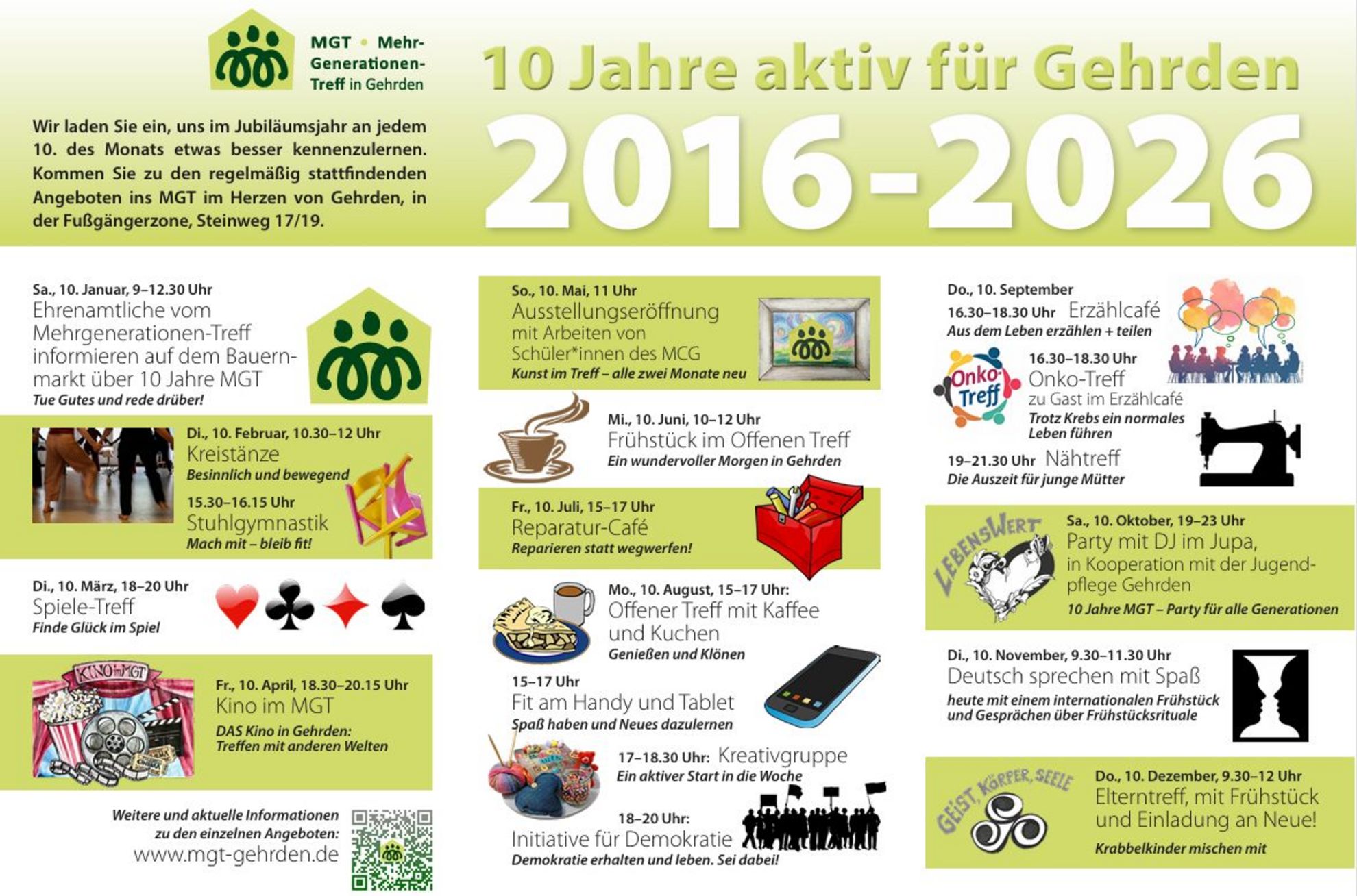 Gehrden. Der Mehrgenerationen-Treff (MGT) Gehrden blickt im Jahr 2026 auf zehn Jahre Vereinsarbeit zurück. Gegründet wurde der Verein im Jahr 2016, die Eintragung ins Vereinsregister erfolgte im April desselben Jahres. Seitdem engagiert sich der MGT mit vielfältigen Angeboten für Begegnung, Bewegung und Gemeinschaft in Gehrden.