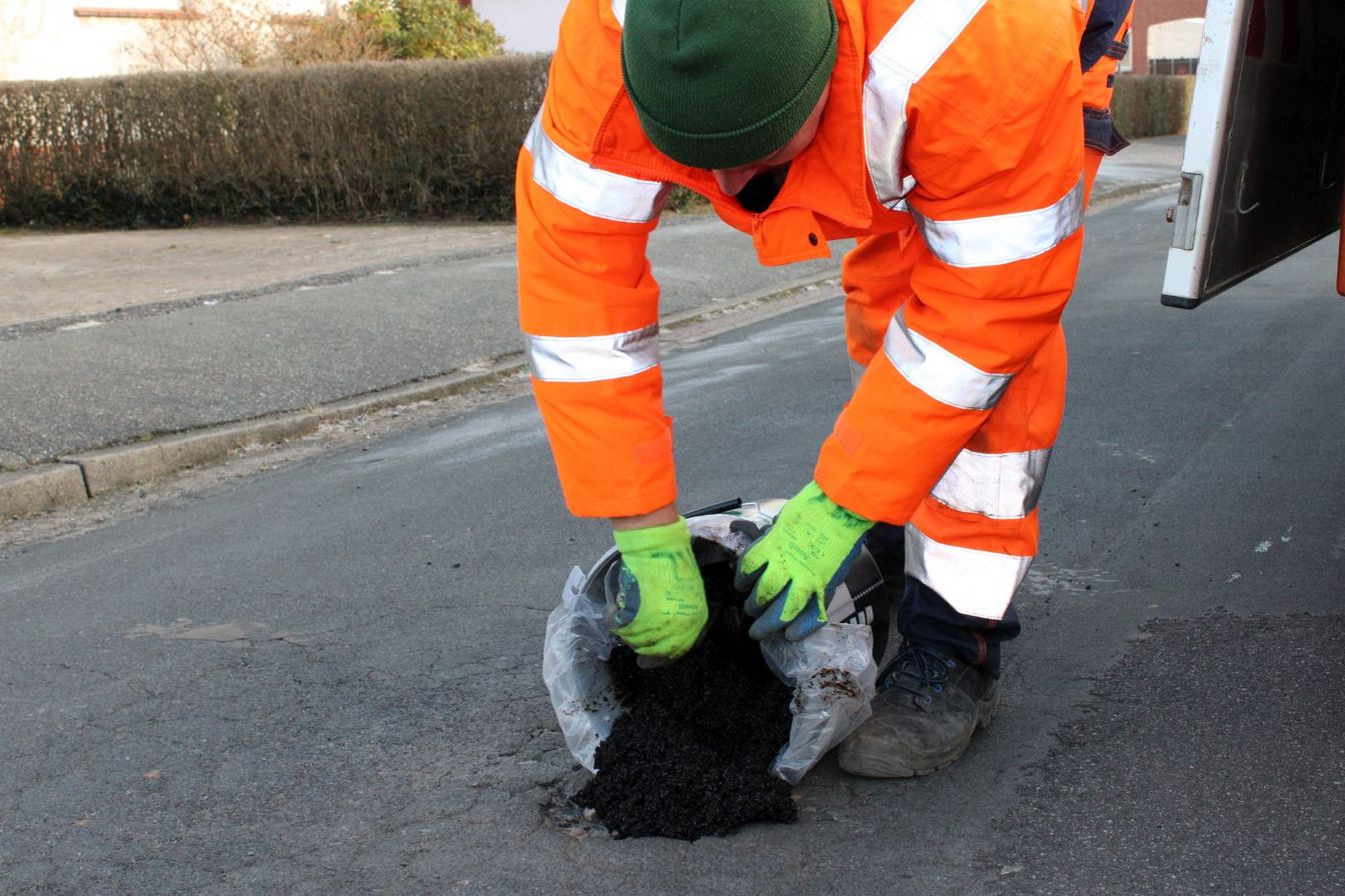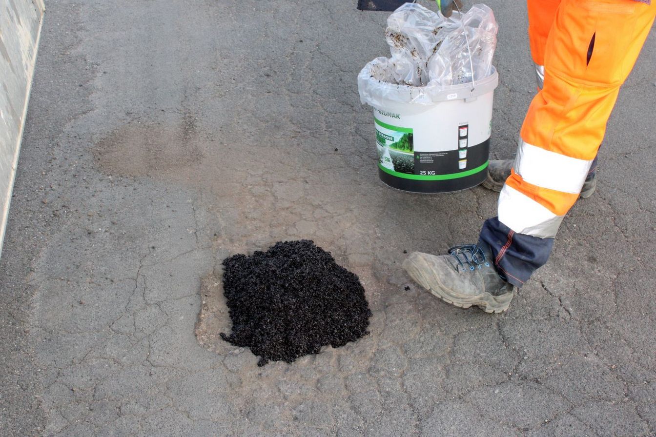 Wird ein entsprechendes Schlagloch gefunden, wird die Stelle ausgefegt und mit Kaltasphalt gefüllt. Anschließend wird die Masse verdichtet und vorsorglich mit Sand abgestreut, damit sie nicht an den Autoreifen haften bleibt. Parallel dazu wird jedes Schlagloch digital erfasst, fotografiert und auf einer Karte dokumentiert.