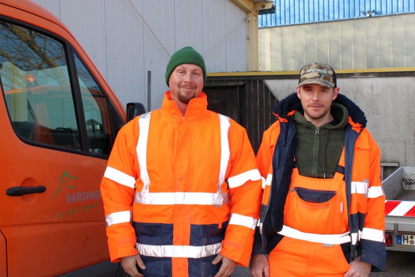 Tino Wagenknecht (l.) und Danny Seidler vom Baubetriebshof sind im Dauereinsatz für sichere Straßen.