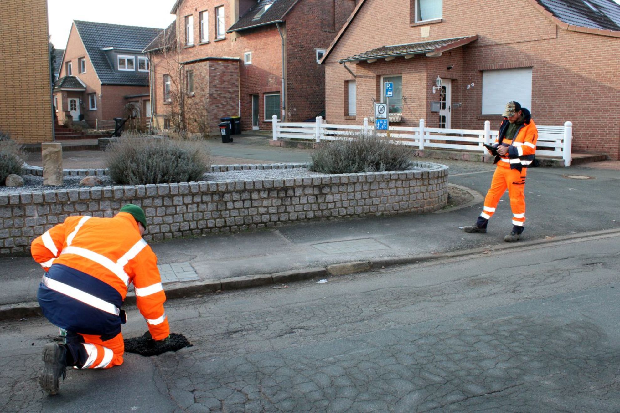 Mindestens vier Mal im Jahr werden alle Straßen im Stadtgebiet vom Baubetriebshof abgefahren und auf Schäden kontrolliert. Je nach Außentemperatur wird bis März Kaltasphalt verwendet, erst im Frühjahr kann mit Heißasphalt gearbeitet werden.