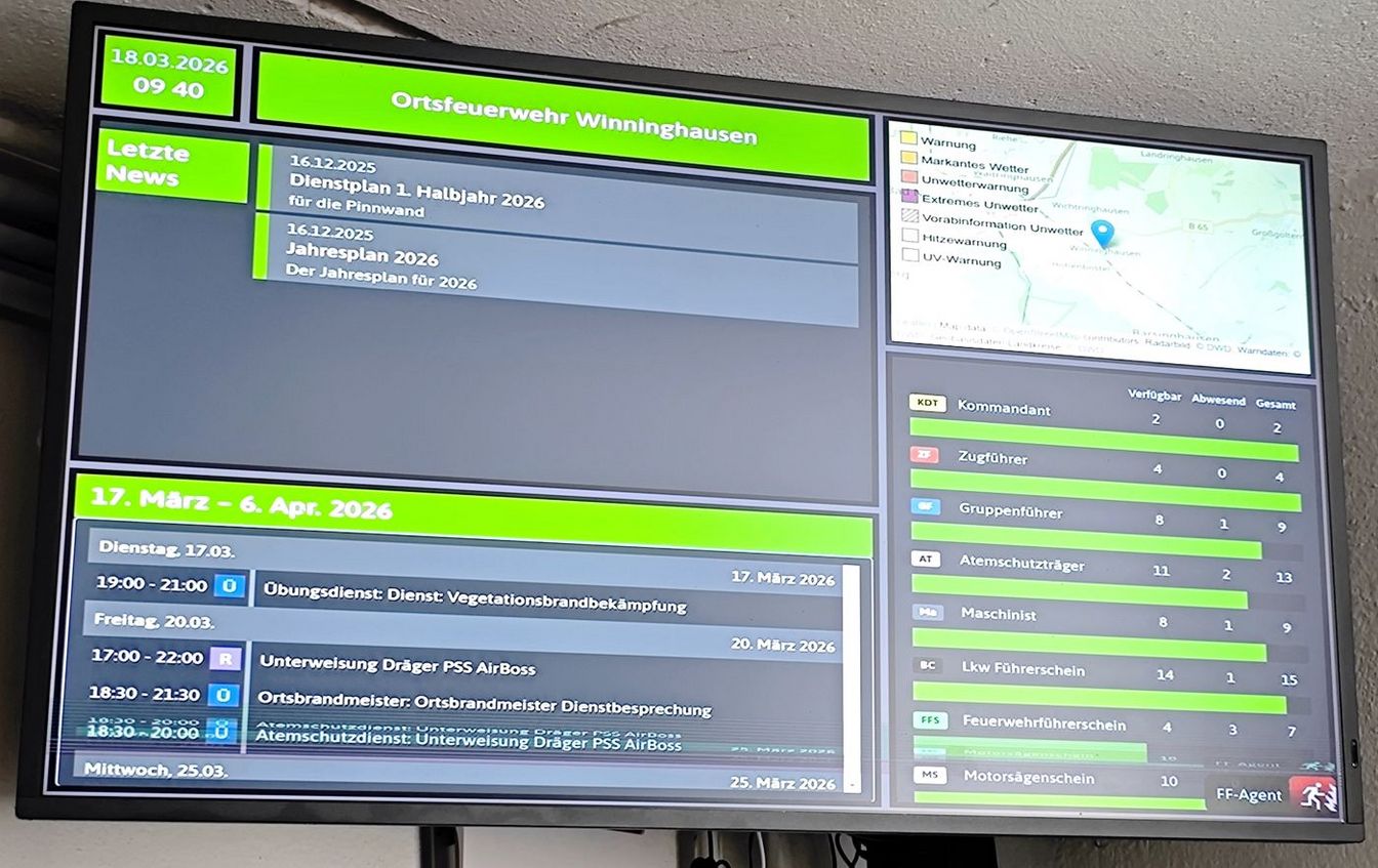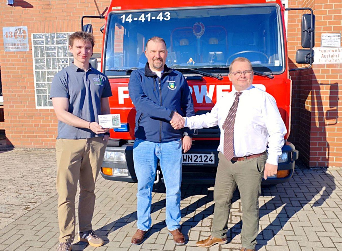 Ortsbrandmeister Daniel Steingrube bedankte sich für die schnelle Hilfe: „Bei dem Stromausfall wurde unser System beschädigt, das wir für die Alarm-App nutzen. So können die Feuerwehrleute ihre Einsatzbereitschaft zurückmelden und der Einsatzleiter weiß schneller, wer zur Verfügung steht. Es ist ein System, das die Einsatzfähigkeit bei Notlagen verbessert.“