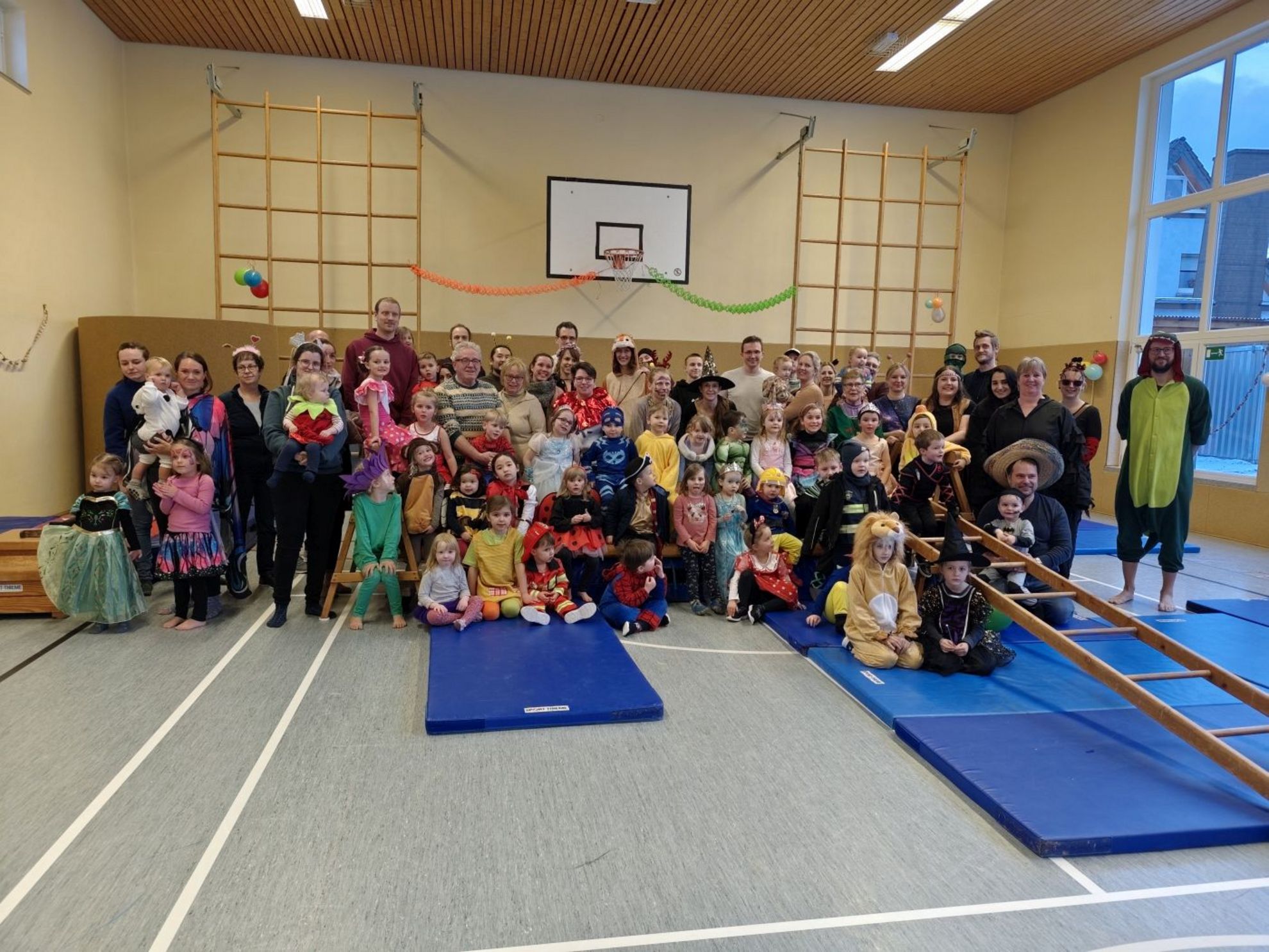 Die Sporthalle verwandelte sich in eine riesige Spiel- und Spaßfläche, in der kleine Prinzessinnen, Superhelden, Tiere und Fantasiefiguren ausgelassen tobten, tanzten und lachten. Zwischendurch konnten sich Groß und Klein bei frisch gebackenen Waffeln, Brötchen und Getränken stärken, bevor es wieder zurück auf die närrische „Partyfläche“ ging. Ein rundum gelungener Rosenmontag mit viel guter Laune und strahlenden Kinderaugen.