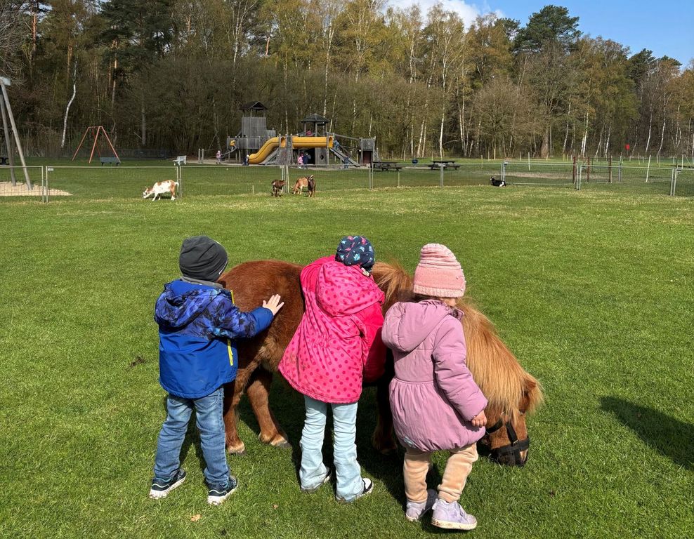 Auf dem Hof gab es viel zu sehen, zu verstehen und zu lernen. Der Umgang mit den Ponys, Hühnern, Ziegen und dem Hofhund fördert bei den Kindern Verständnis und Empathie und vermittelt gleichzeitig viel Wissen.