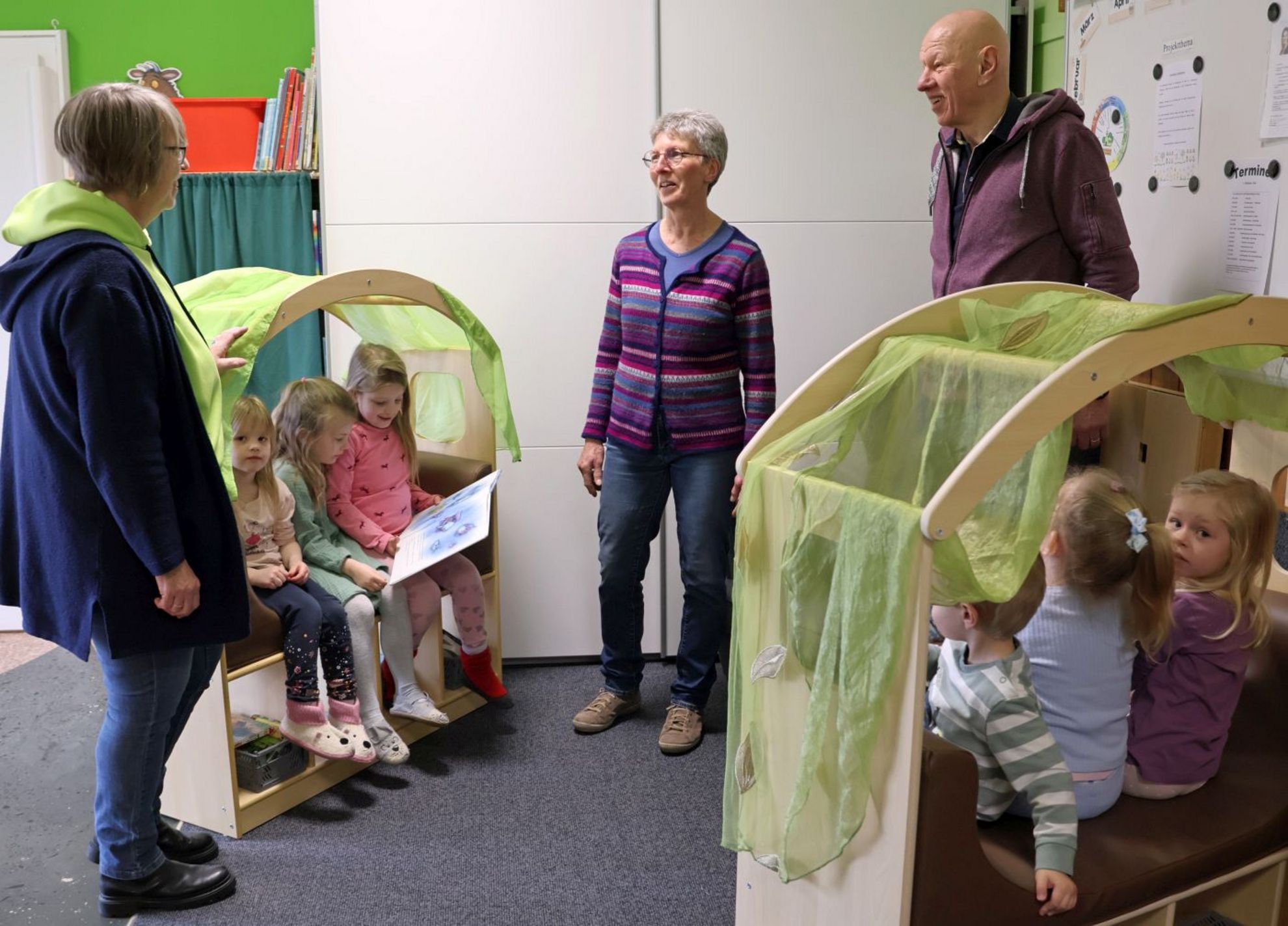 Möglich wurde die neue Leseecke durch die Unterstützung der Stiftung Thomaskinder. Dank der Förderung konnten die Lesebänke angeschafft werden. Am Mittwoch, 4. März, besuchten die Kuratoriumsvorsitzende Ulrike Henjes und ihr Stellvertreter Axel Heyerhorst die Kita, um sich vor Ort ein Bild zu machen. Gemeinsam mit den Kindern nahmen sie die neue Leseecke direkt in Augenschein.
