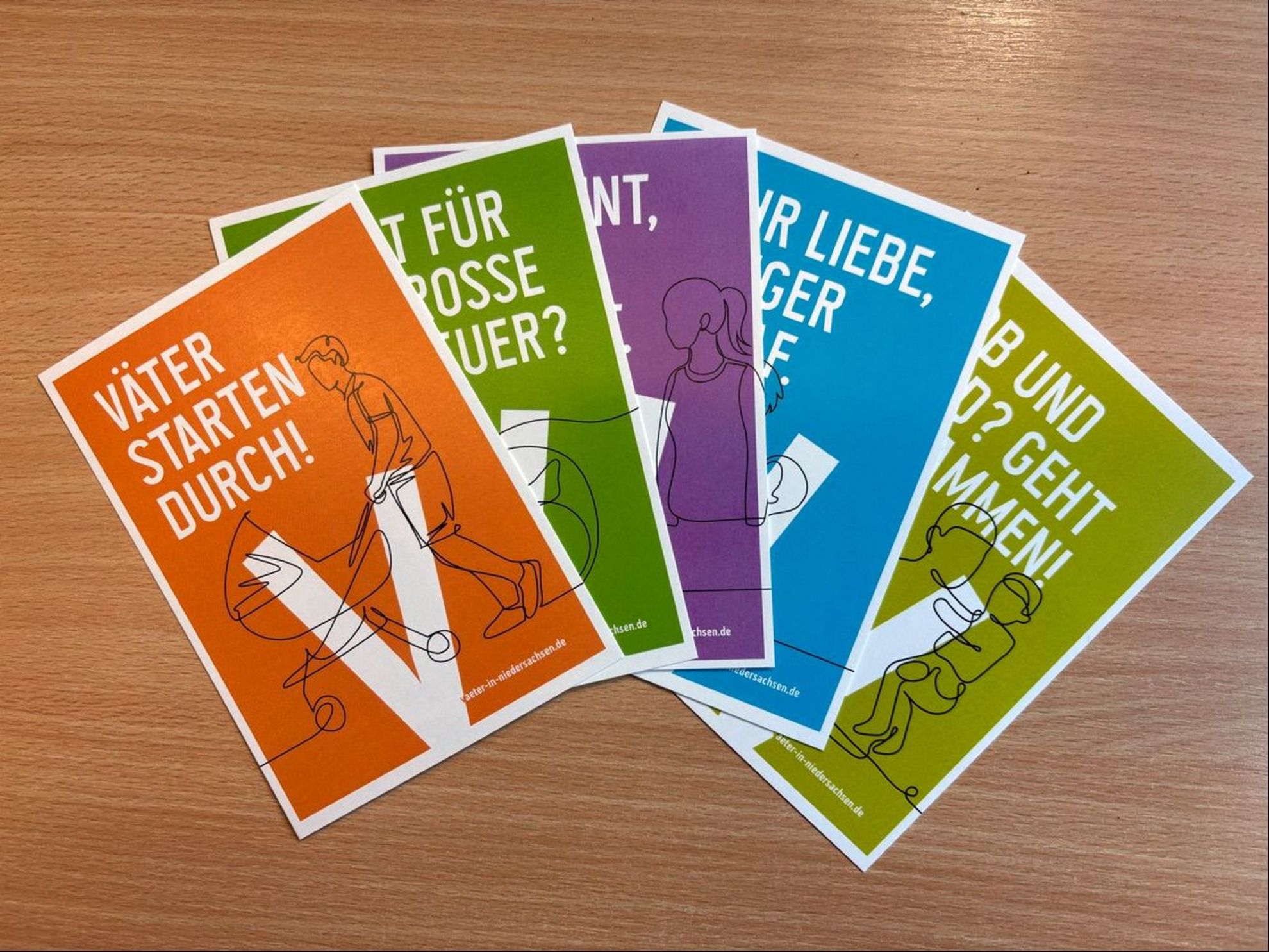 Die Postkarten können kostenfrei bestellt werden. Die Bestelladresse, weitere Infos zur Kampagne sowie die Postkarten zum Download gibt es unter www.vaeter-in-niedersachsen.de und www.ms.niedersachsen.de/startseite/jugend_familie/familien_kinder_und_jugendliche/familien/landesarbeitsforum_aktive_vaterrolle/landesarbeitsforum-aktive-vaterrolle-13756.html.