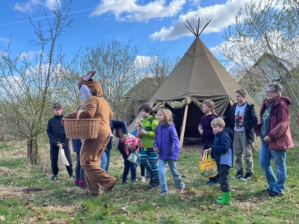 Obwohl es sich dabei um Eier und Häschen aus Kunststoff handelt, ist die Motivation groß. Denn für das Finden, werden die Kinder vom erleichterten Osterhasen mit einem schmackhaften Schokoladenhasen und einem kleinen Extra belohnt.