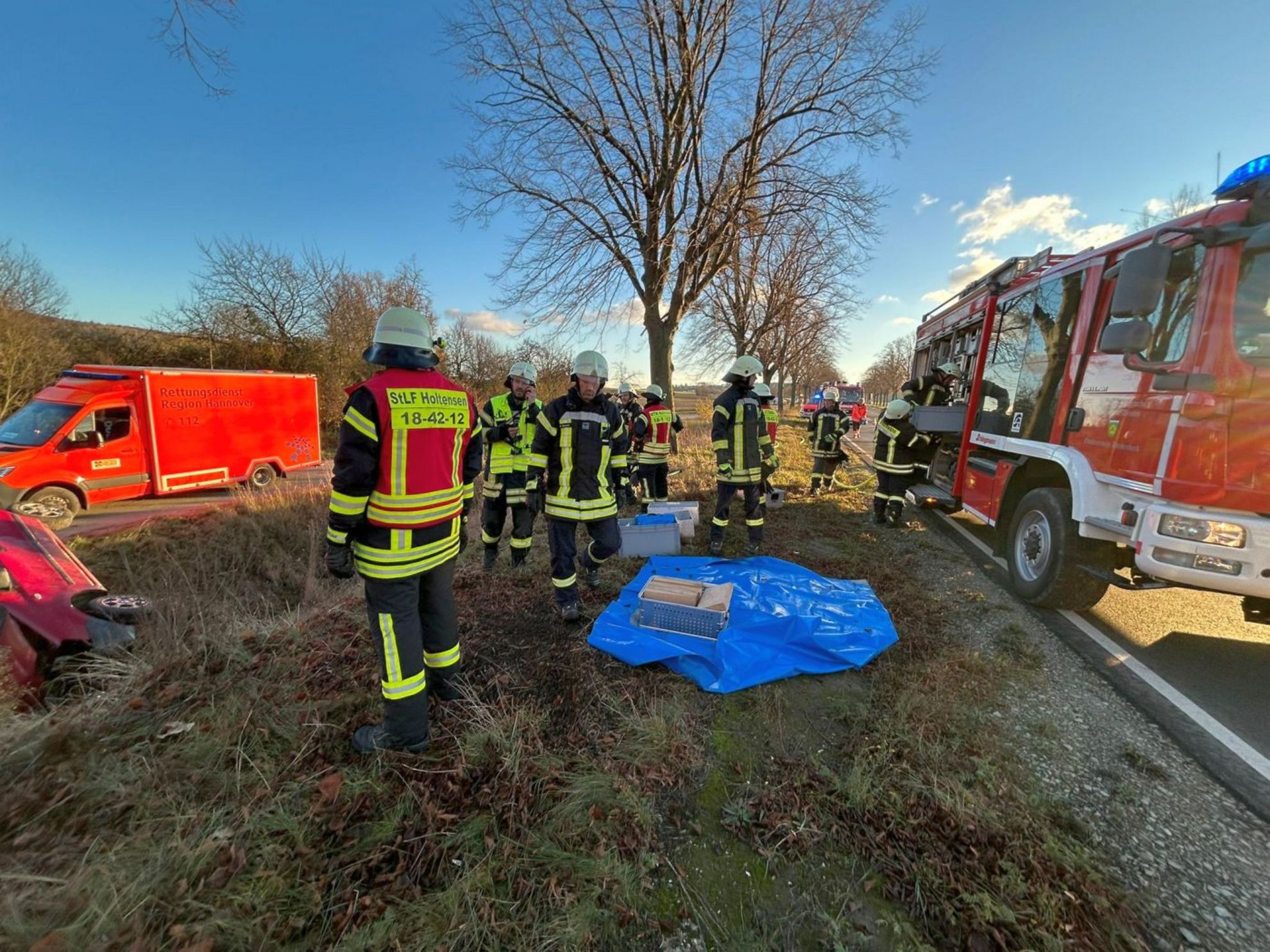 Holtensen. Am Donnerstagnachmittag um 14.59 Uhr wurden die Feuerwehren Bredenbeck, Holtensen und Evestorf zu einem Verkehrsunfall auf die B217 zwischen Steinkrug und Holtensen alarmiert. Der Einsatzstichwort „Pkw überschlagen, fraglich eingeklemmt“ ließ zunächst Schlimmeres vermuten.