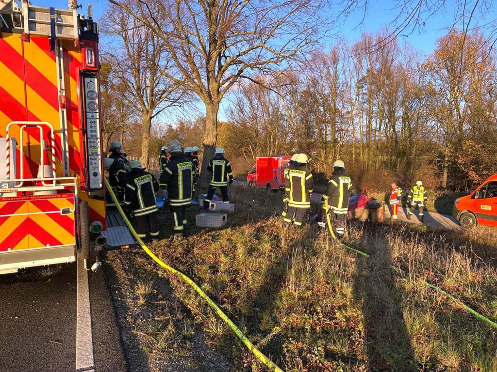 Vor Ort stellte sich heraus, dass ein Fahrzeug mit zwei Insassen verunfallt war und seitlich zum Liegen gekommen war. Beide Personen erlitten mittelschwere Verletzungen. Entgegen der ersten Meldung waren sie nicht eingeklemmt, jedoch im Fahrzeug eingeschlossen. Die Feuerwehr sicherte den Pkw und entfernte die Windschutzscheibe, um die beiden Insassen schonend zu befreien und dem Rettungsdienst zu übergeben.