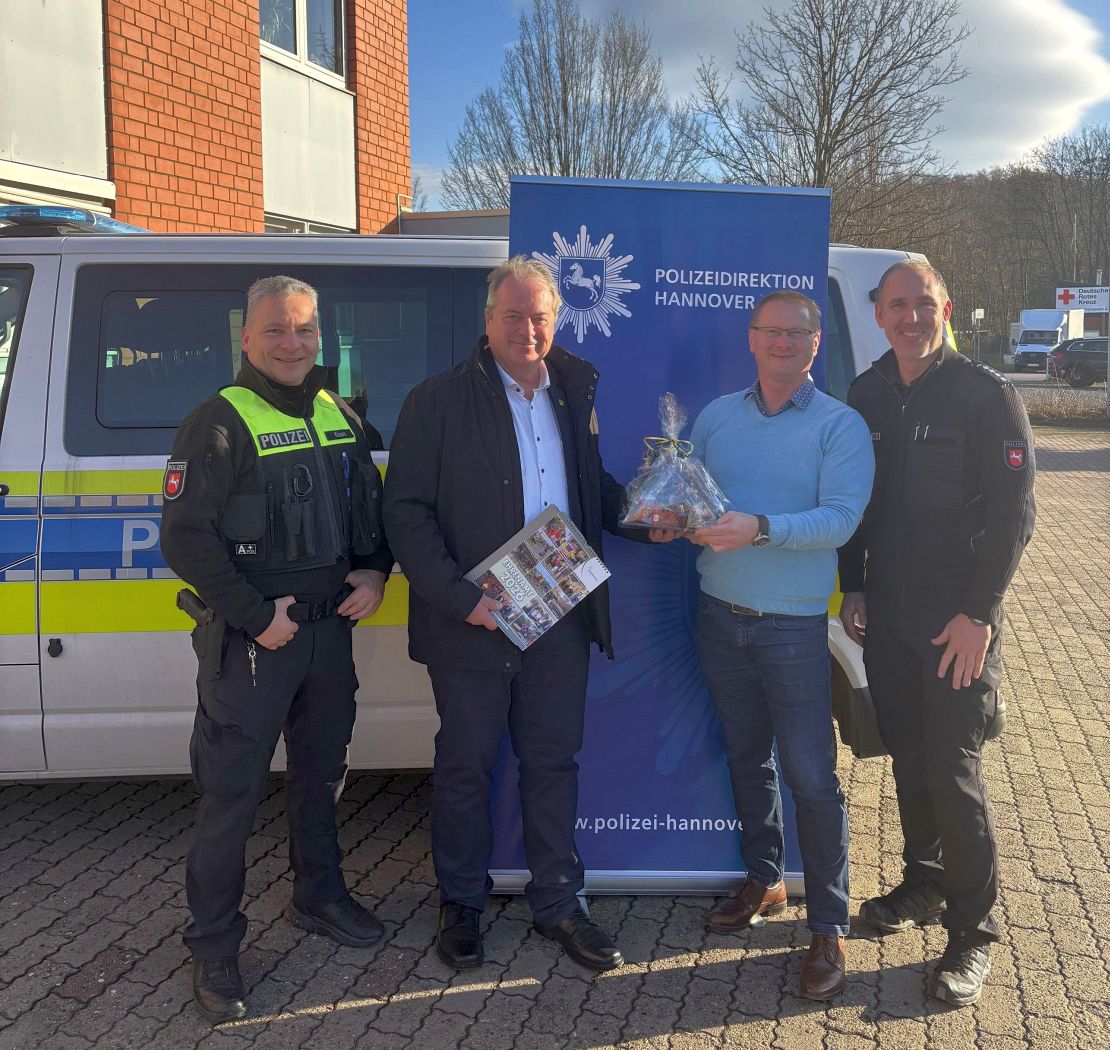 Barsinghausens Bürgermeister Henning Schünhof hat sich in einem offenen und konstruktiven Gespräch mit Claas Wentzler, Leiter des Einsatz- und Streifendienstes, sowie Ludger Westermann, Leiter des Polizeikommissariats Barsinghausen, über aktuelle Themen der Sicherheitsarbeit ausgetauscht. Im Mittelpunkt standen dabei sowohl die gegenwärtigen Herausforderungen als auch der Blick auf zukünftige Entwicklungen. Als Zeichen seiner Wertschätzung überreichte der Bürgermeister den Gesprächspartnern eine kleine Aufmerksamkeit.