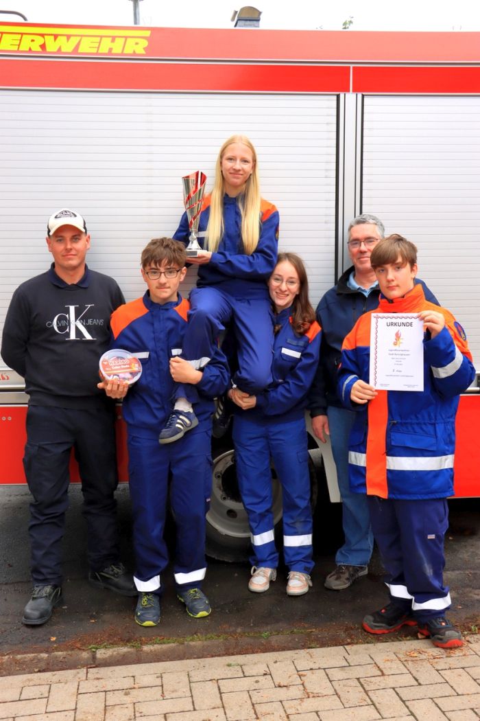 Am Ende gab es dann eine Verpflegung nach „Jugendfeuerwehrart“ (Bratwurst, Chicken Nuggets und Pommes). Besonders gefreut haben sich die Kinder über das Eis zum Dessert, das von der Fa. REWE Torsten Krause gespendet wurde. Zur Siegerehrung kamen dann auch Bürgermeister Henning Schünhof, der stlv. Stadtbrandmeister Kai Krömer, der Stadtjugendwart Stefan Sierth sowie einige Ortsbrandmeister der teilnehmenden JF`s die es sich nicht nehmen ließen, den Preis an die Sieger zu übergeben. Den ersten Platz belegte die Jugendfeuerwehr Wichtringhausen, Platz 2 ging an die JF Landringhausen, gefolgt von der Gruppe Langreder 1.