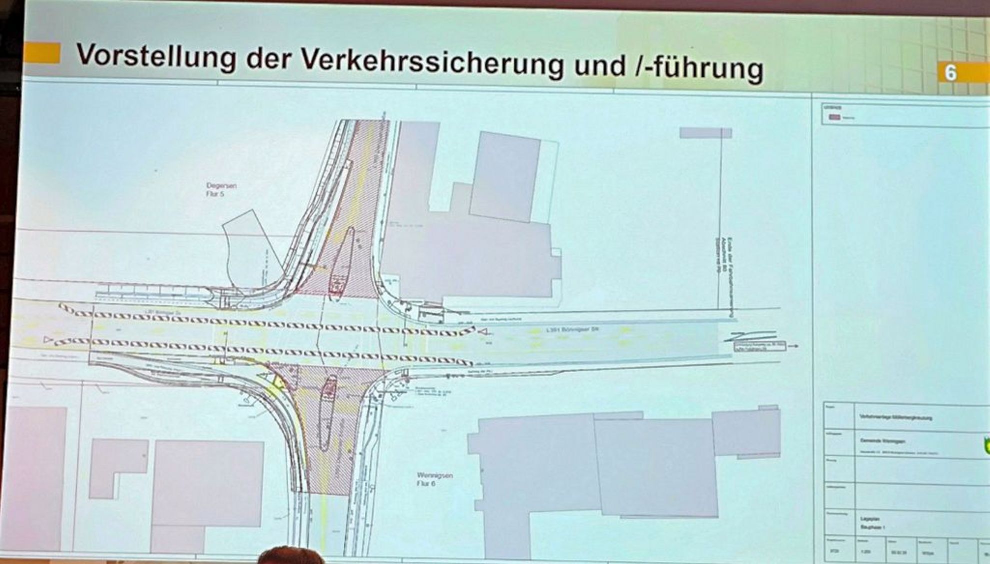 Die Baufirma teilte bei einem ersten Treffen mit Gewerbetreibenden und Gemeinde mit, dass man einen sportlichen Zeitplan vor sich hätte. Man versuche je nach Baufortschritt auf Probleme zu reagieren, jedoch stehe die Fertigstellung im Vordergrund. Aufgrund der gewachsenen Infrastruktur in Wennigsen gibt es wenige Alternativen für Umleitungen. Ein Parkverbot auf der Hauptstraße habe Vor- und Nachteile und müssten mit der Zuständigen Straßenbehörde geklärt werden. Nicht alles dürfe die Gemeinde selbst entscheiden.