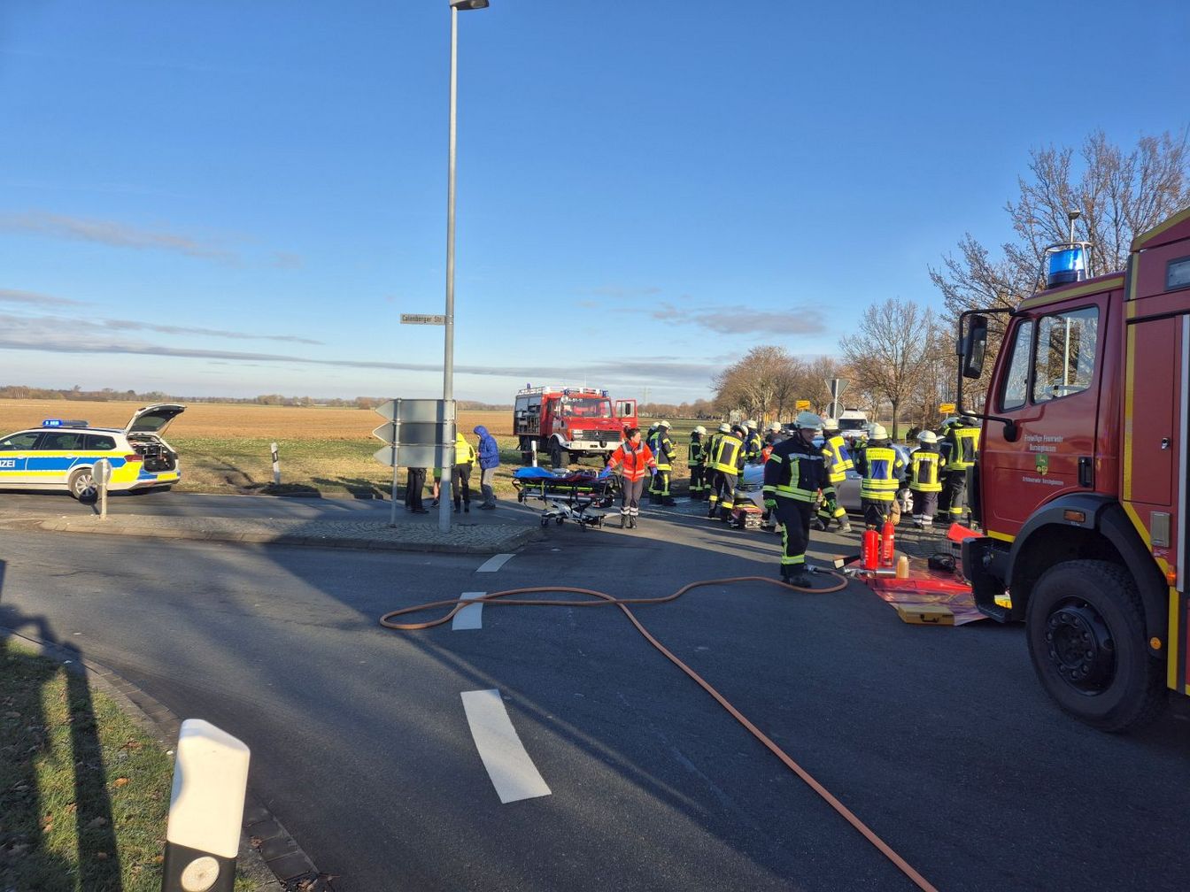 Die Einsatzkräfte sicherten die Unfallstelle und sperrten den Verkehr. Während der Rettungsmaßnahmen musste der gesamte Kreisel vorübergehend für den Verkehr geschlossen werden.