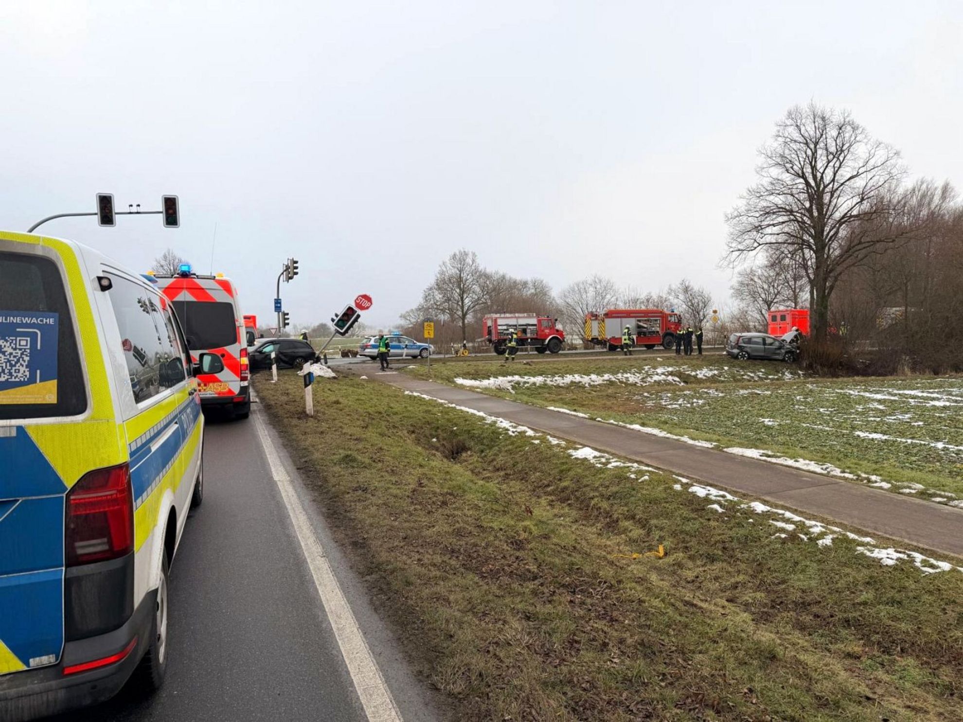 Barsinghausen. Bei einem Verkehrsunfall an der Kreuzung B65 / L392 in Barsinghausen sind am Montagvormittag, 9. Februar 2026, zwei Menschen verletzt worden. Um 09:41 Uhr wurden die Feuerwehren Barsinghausen und Kirchdorf alarmiert. Ausgelöst wurde der Einsatz durch ein automatisches eCall-System, das ohne Sprechkontakt einen Notruf absetzte und von der Polizei an die Rettungskräfte weitergeleitet wurde.