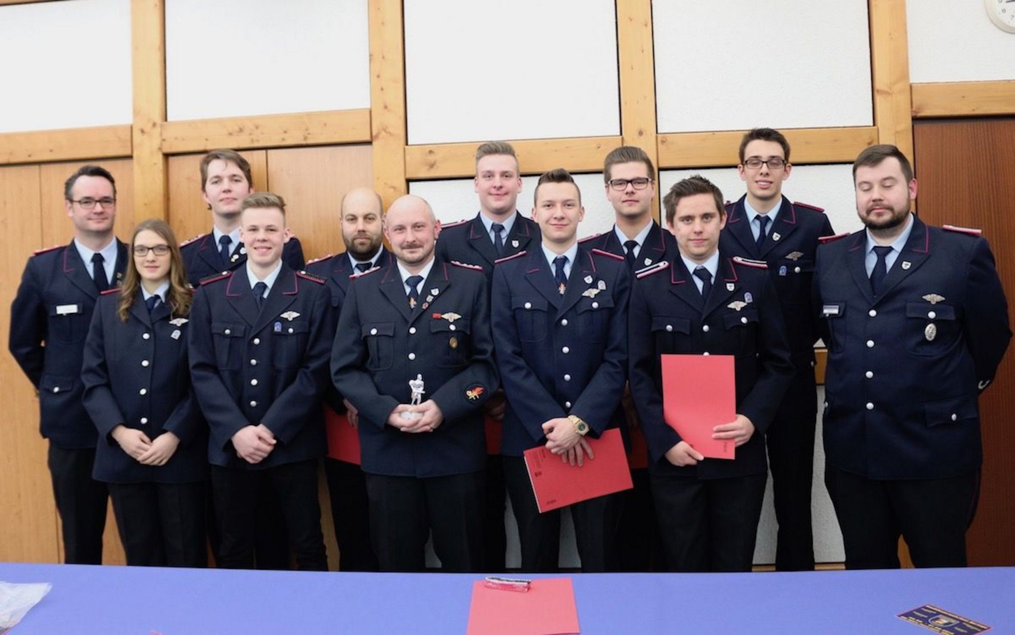Die Feuerwehrmann Anwärter Lukas Bednarek und Torben Pflüger wurden zu Feuerwehrmännern ernannt.