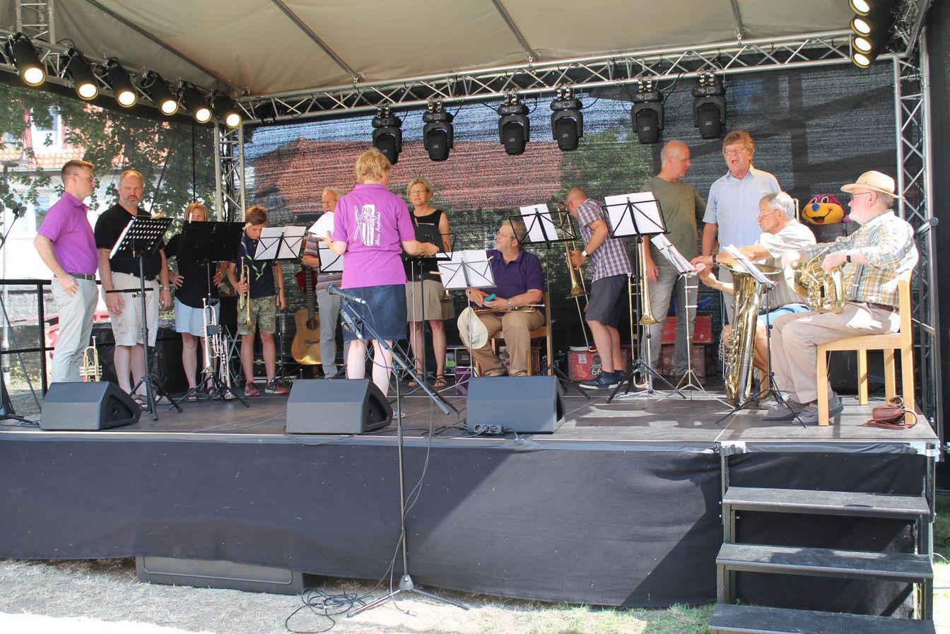 Das Wetter stimmt, die Laune auch. Die Besucher genießen das bunte Programm, die Kinder freuen sich über Aktivitäten wie Schminken, Kinderfrisuren, Riesenseifenblasen, Riesenkicker, Hüpfburg, Schokokusswurfmaschine und vieles mehr. Sogar ein Schmied ist vor Ort und für das leibliche Wohl ist ebenfalls bestens gesorgt. Ab 18 Uhr gibt es Live-Musik von BlueMHour, ab 20 Uhr von Most Wanted.