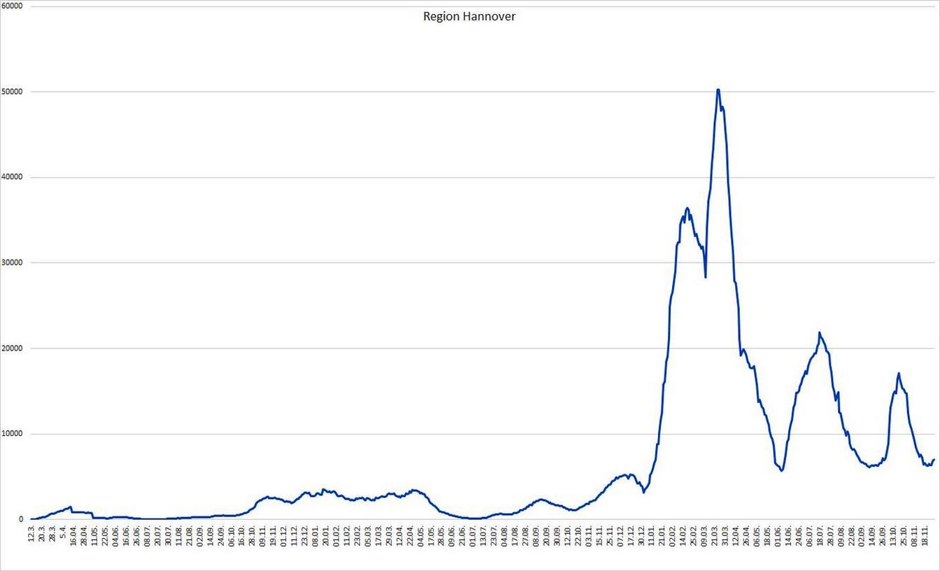 Region. Die 7-Tages-Inzidenz pro 100.000 Einwohner, wird vom RKI ermittelt und täglich veröffentlicht. Die beiden anderen Werte – die 7-Tage-Inzidenz zur Neuaufnahme von Covid-Patienten und der Anteil von Covid-Patienten an Intensivbetten – sind Landeswerte für ganz Niedersachsen und gelten auch für die Region Hannover. Sie werden täglich vom Land veröffentlicht. .