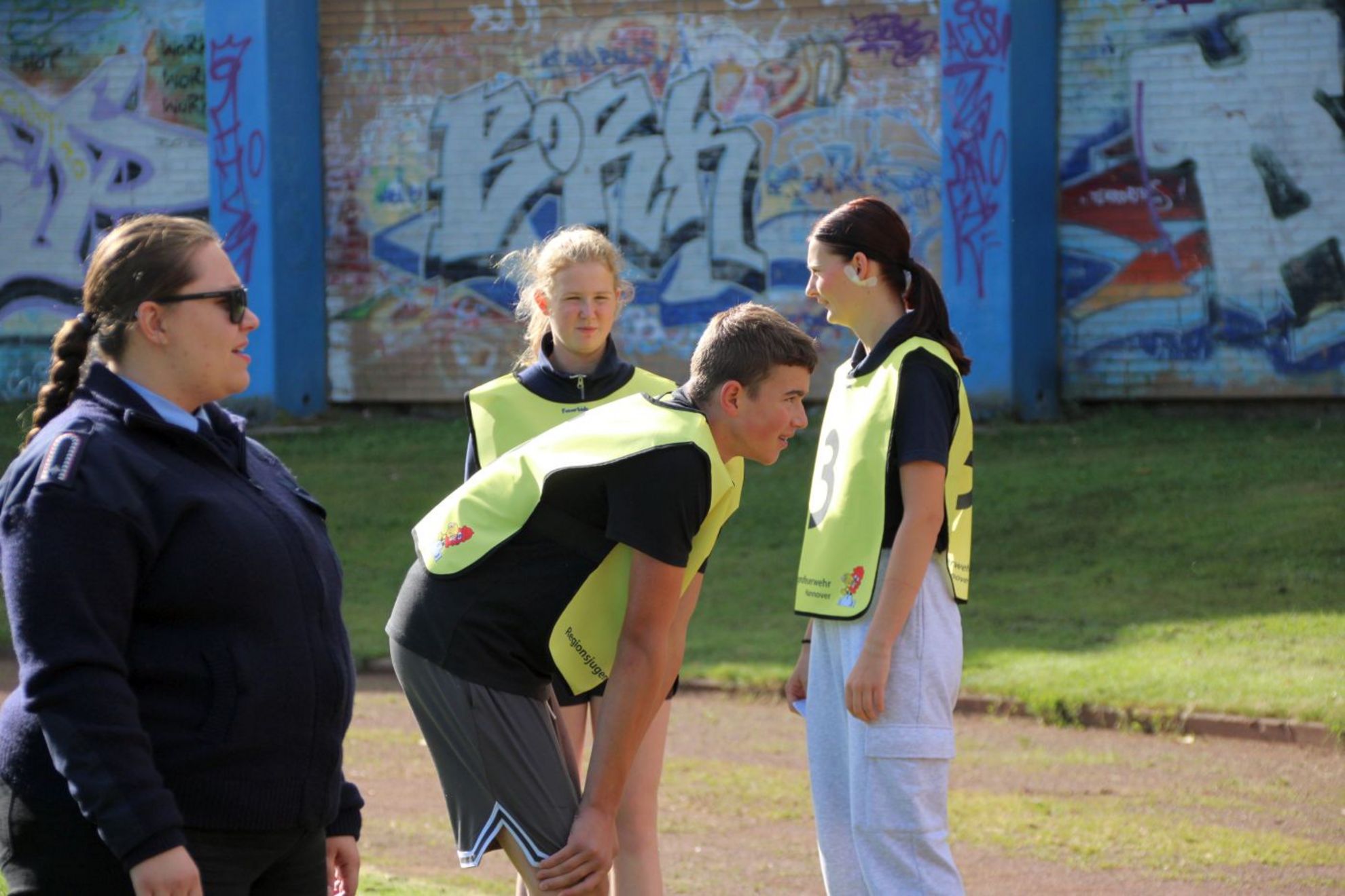Viele der Jugendlichen haben sich in ihren Teams seit Wochen und Monaten vorbereitet. Einige sogar schon in den Sommerferien. Bei regelmäßigen Treffen wurden die Disziplinen geübt. Für das Team aus Wennigsen ist der Löschangriff die beliebteste Disziplin – Kugelstoßen weniger. „Daher machen wir die am Schluss“, so das Team. Das Team aus Pattensen setzt sich aus Jugendlichen verschiedener Ortswehren zusammen und zeigt sich hoffnungsvoll vor dem Beginn des Staffellaufs. Auch die Ronnenberger sind mit Teams aus verschiedenen Ortswehren dabei. „Wir haben heute beim Wettbewerb unsere Bestzeiten aus dem Training noch übertroffen“, freuen sie sich. Etwas nervös wirkt das Team aus Hohenbostel vor der Fragenbeantwortung. Doch der „Prüfer“ nimmt den Jugendlichen die Angst und so kann auch hier souverän Leistung gebracht werden.