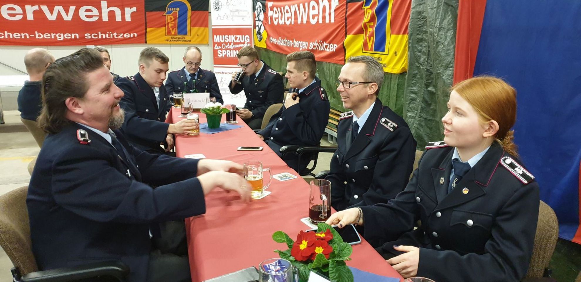 Abzeichen für die Mitgliedschaft im Feuerlöschwesen erhielten Brandmeister Björn Bieniek (25 Jahre), Hauptlöschmeister Daniel Horn (25 Jahre) und Erster Hauptfeuerwehrmann Rolf Hungerland (40 Jahre).