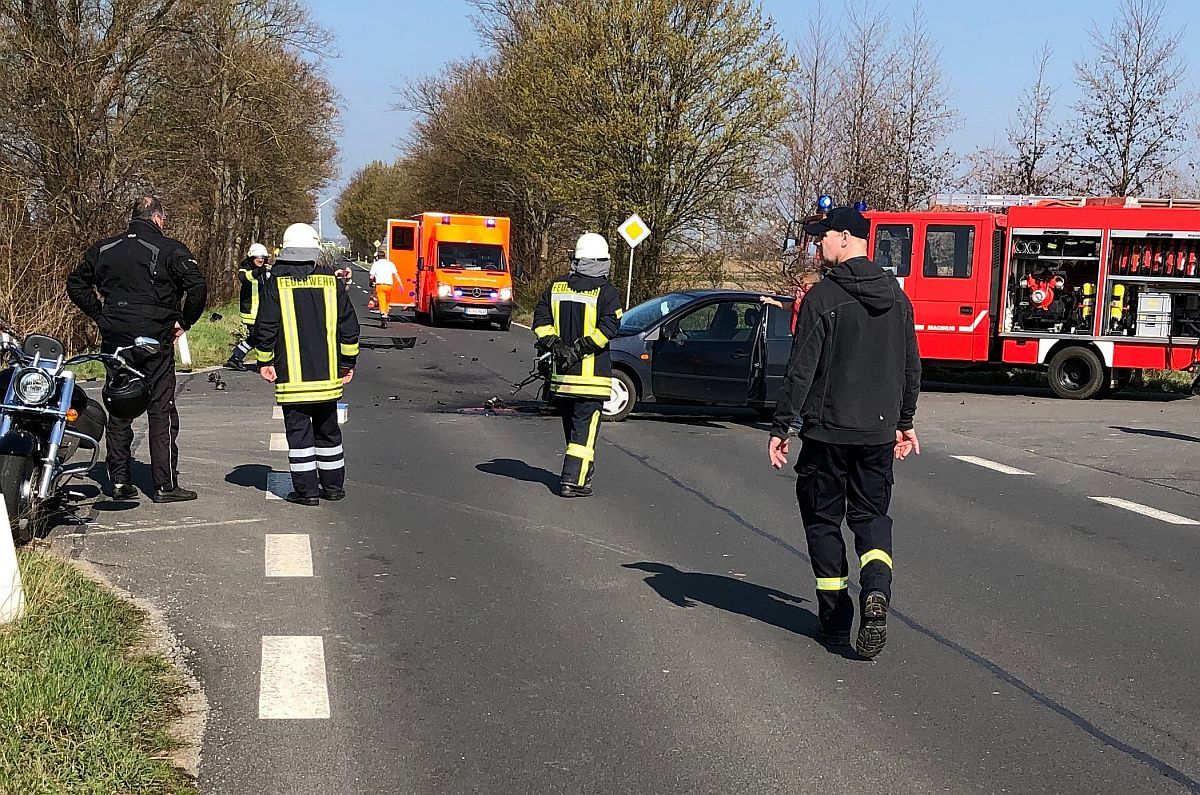 Bei einem Unfall zwischen einem PKW und einem Motorrad auf der L422 bei Hüpede wurden heute Morgen um 11.10 Uhr zwei Personen verletzt, eine davon schwer (wir berichteten).