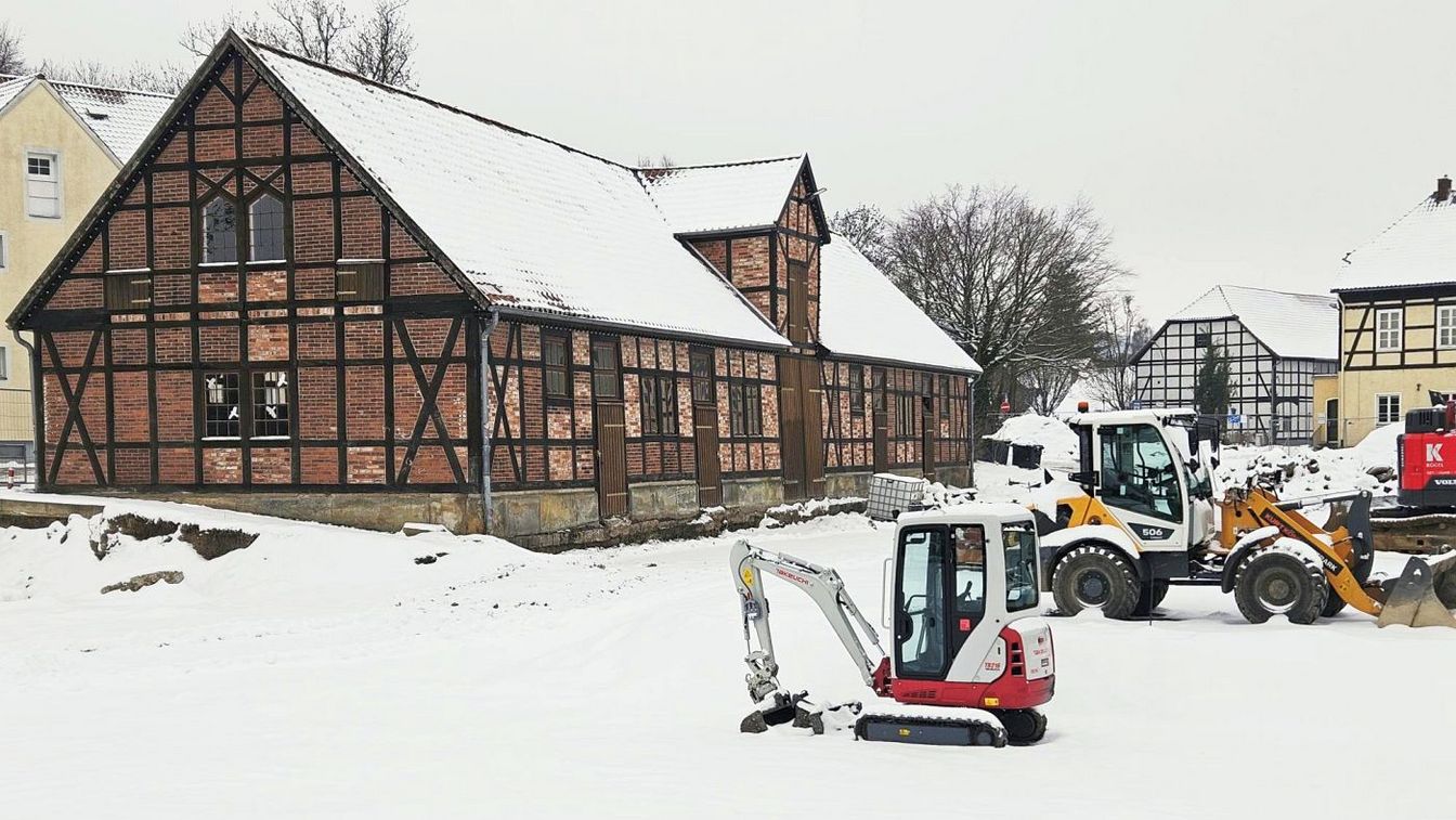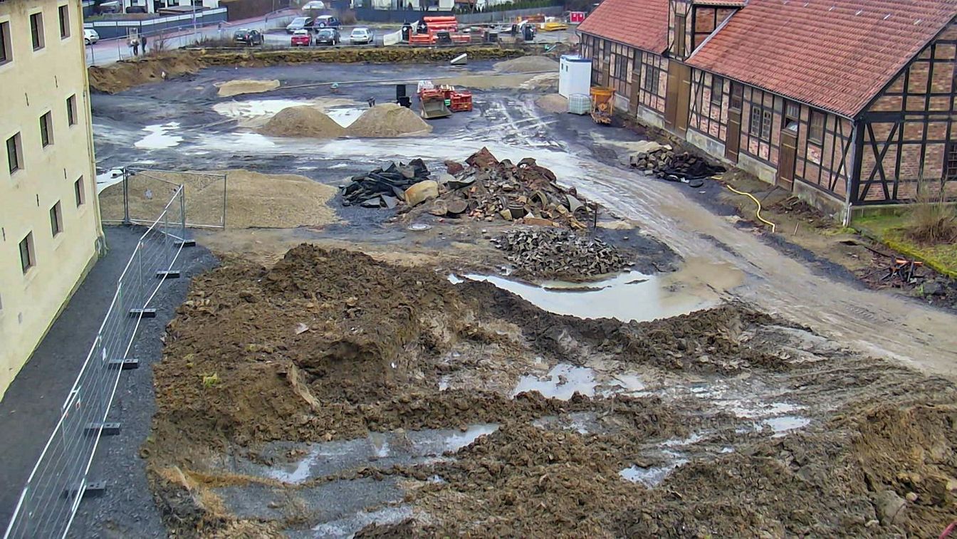 Springe. Mit den milderen Temperaturen schreiten die Arbeiten für das neue Rathaus auf dem Burghof weiter voran. In den vergangenen Wochen wurde im Zuge der Tiefbauarbeiten der unterirdische Tank für die schlesische Militsch-Eiche verlegt. Dabei trat jedoch ein unerwartetes Hindernis auf: Ein großer Ast des benachbarten Baums blockierte den Arbeitsbereich.