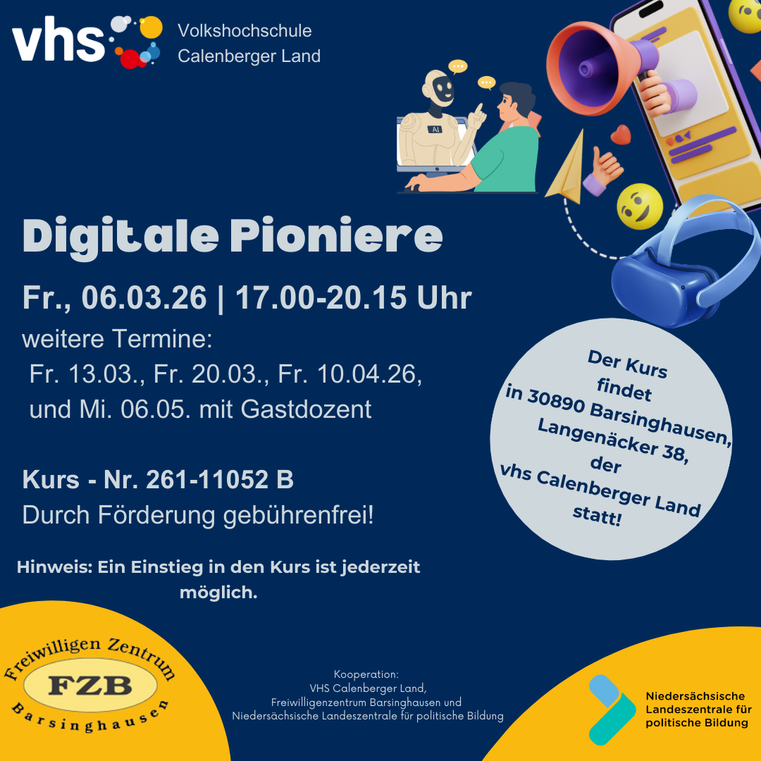 Region. Wie entstehen Meinungen im Netz? Wo endet Information – und wo beginnt Manipulation? Mit dem Kurs „Digitale Pioniere – zwischen Fakten & Fakes“ lädt die Volkshochschule Calenberger Land alle Interessierten dazu ein, digitale Medien kritisch zu hinterfragen und ihre Wirkung auf Demokratie und Gesellschaft besser zu verstehen.