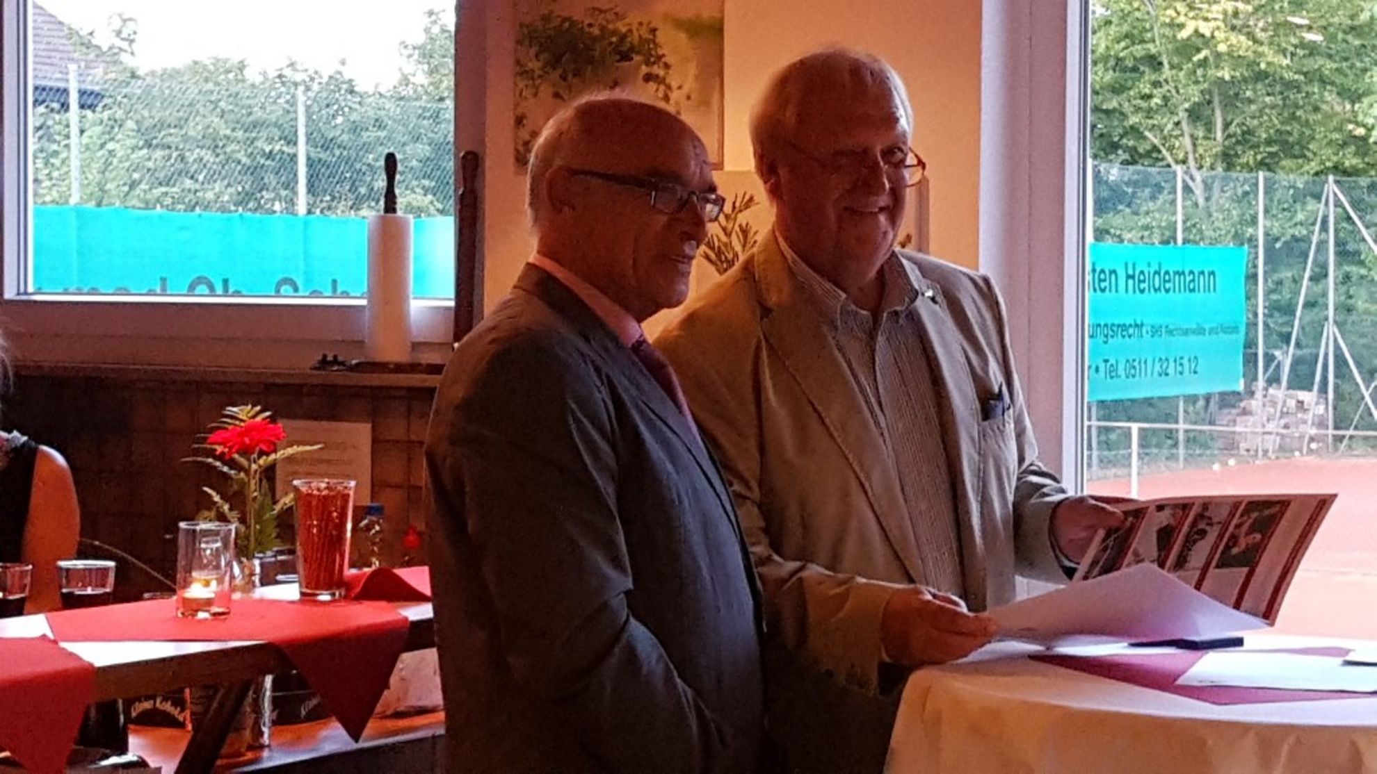 Manfred Dankemeyer, 1. Vorsitzender des Niedersächsischen Tennisverbands e.V. Region Hannover, betonte im Anschluss, wie stolz er auf den Verein sei und dass er sich stets gerne erinnere, wie schön die Feiern des Rot-Weiß Ronnenberg waren. Auch er hatte eine Überraschung parat: Shirts, Hemden und Handtücher in rot-weiß.