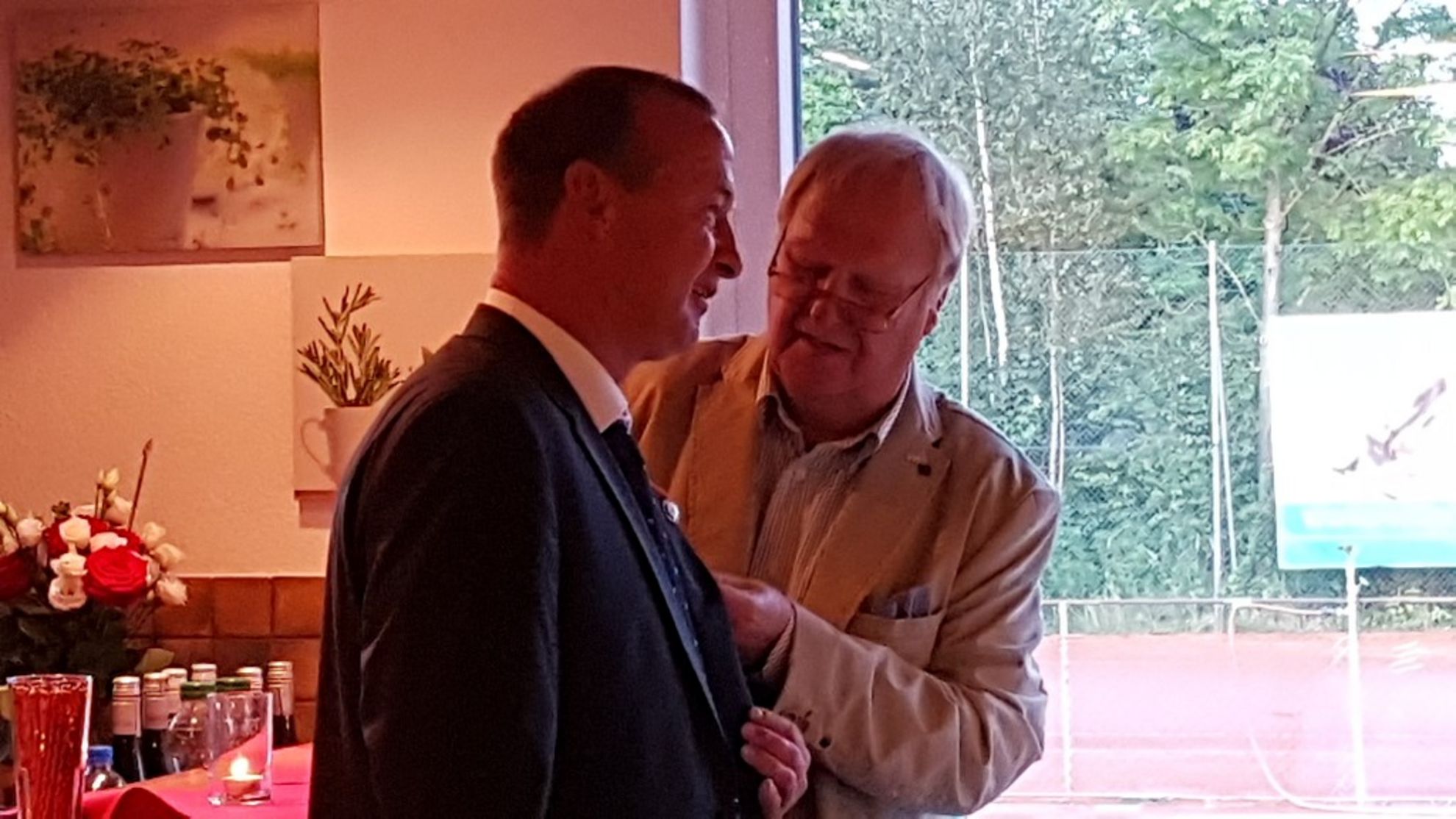 Rolf Siekmüller (seit 1976 im Amt zu Gunsten des Vereins) vergoldete