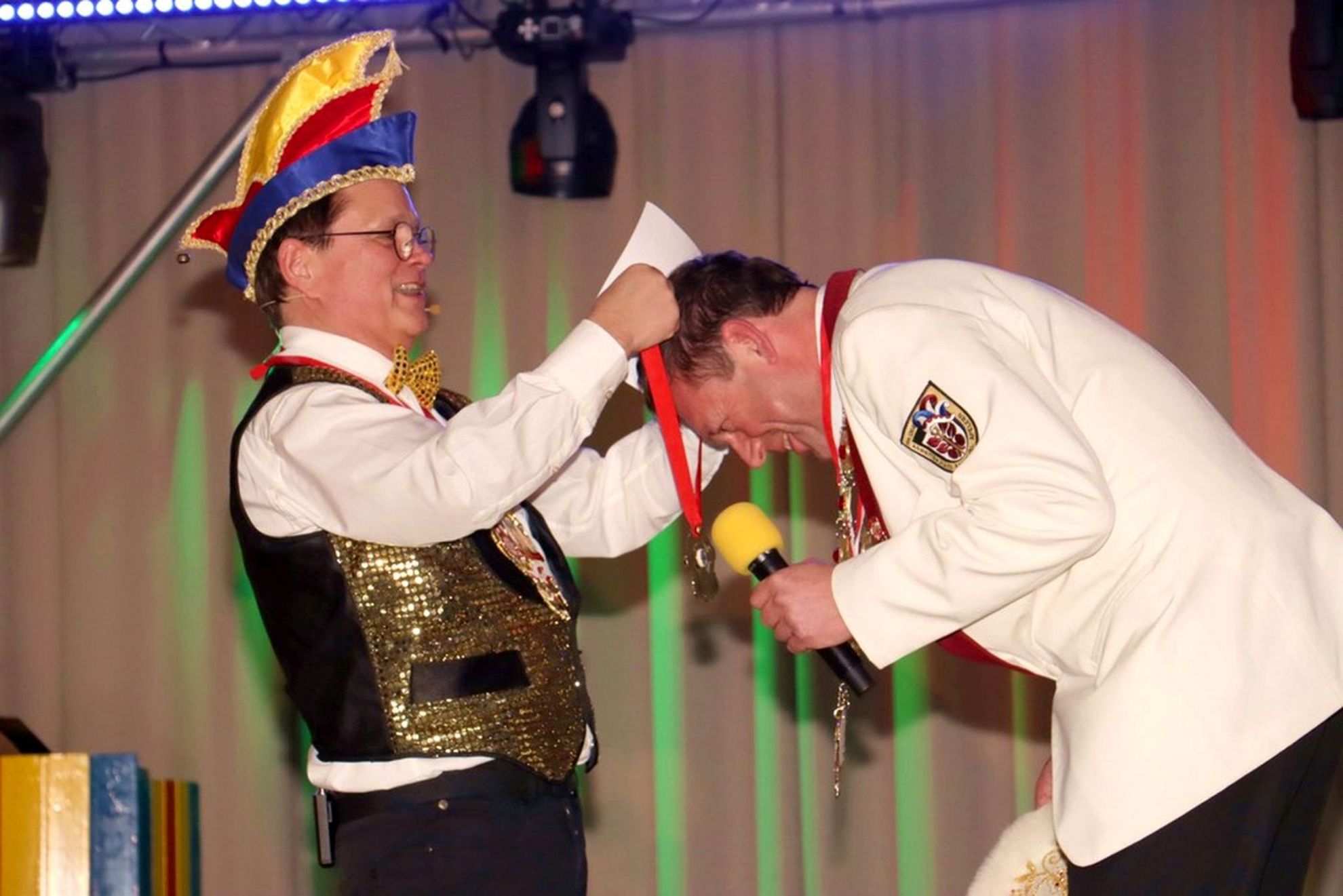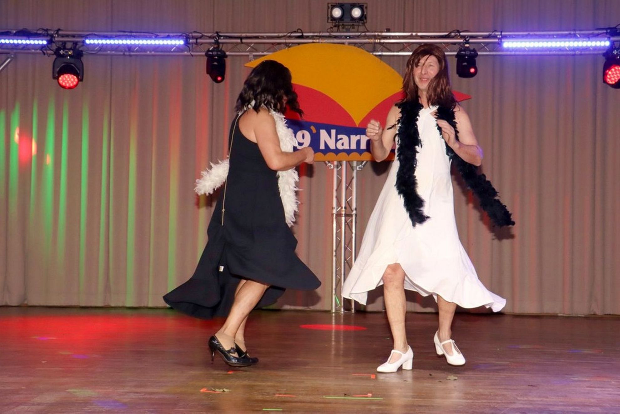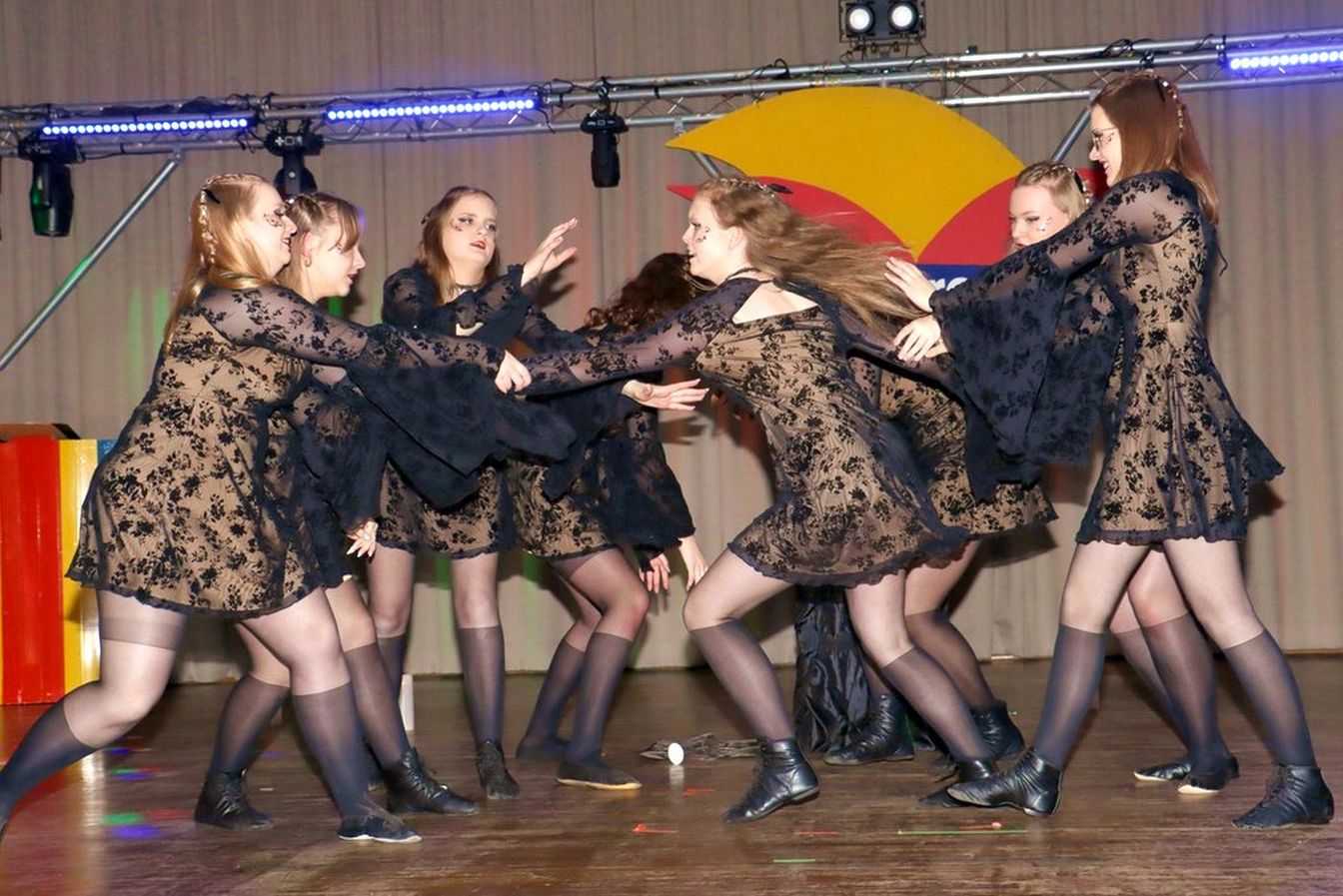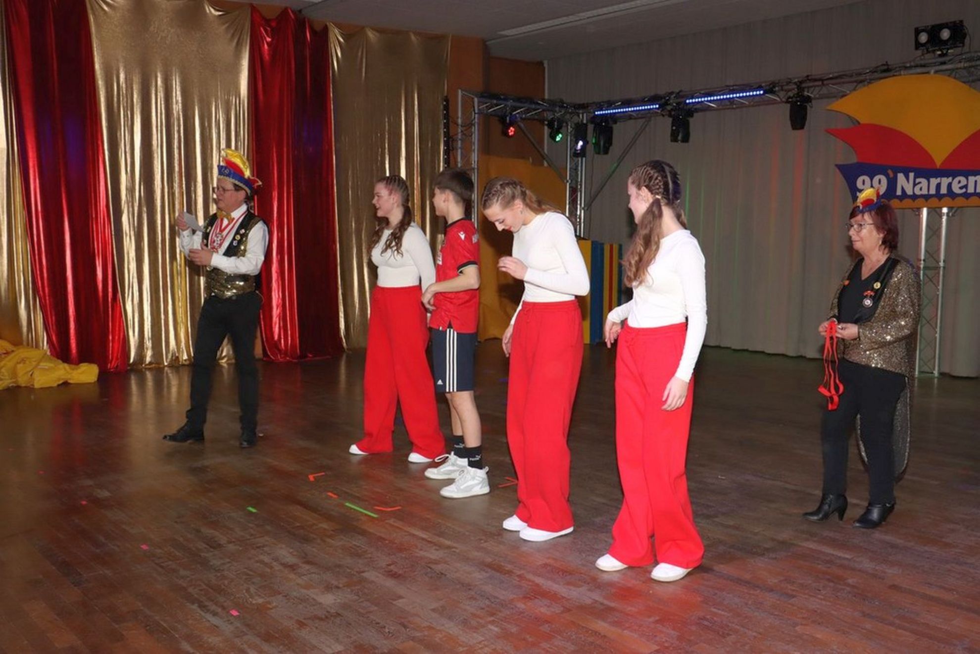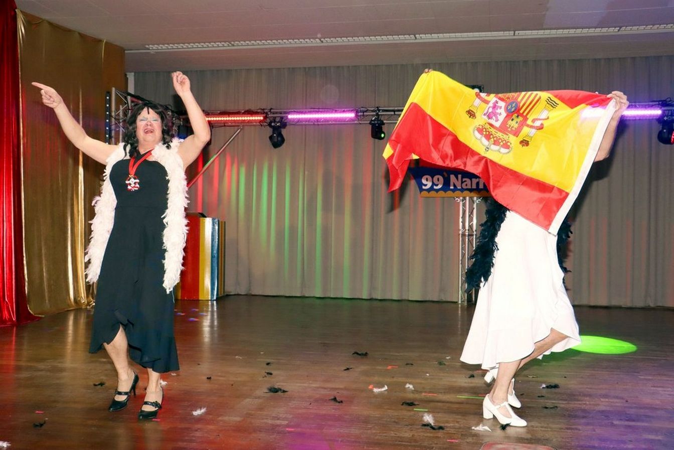 Die ausverkaufte Halle wurde von Wolfgang Pardey und Andreas Bröder begrüßt. Moderiert wurde die Karnevalsfeier erneut von Holger Heine. Auf dem Programm standen dann die Tanzmariechen aus Ricklingen und Rainer Thon als „Der Therapeut“. Besonders stolz zeigte sich der Vorsitzende Pardey über Mina Bröder und Emma Zimmer. Die beiden jungen Tänzerinnen kommen aus dem Verein und standen mit ihren eigenen Tanznummern zum ersten Mal auf der Bühne. „Sogar ihre Kostüme haben sie selbst gestaltet“, so Pardey zum Nachwuchs der ’99er Narren. Für Begeisterung sorgten auch die Tanzgruppe aus Ricklingen, die Garde aus dem Partnerverein aus Apelern.
