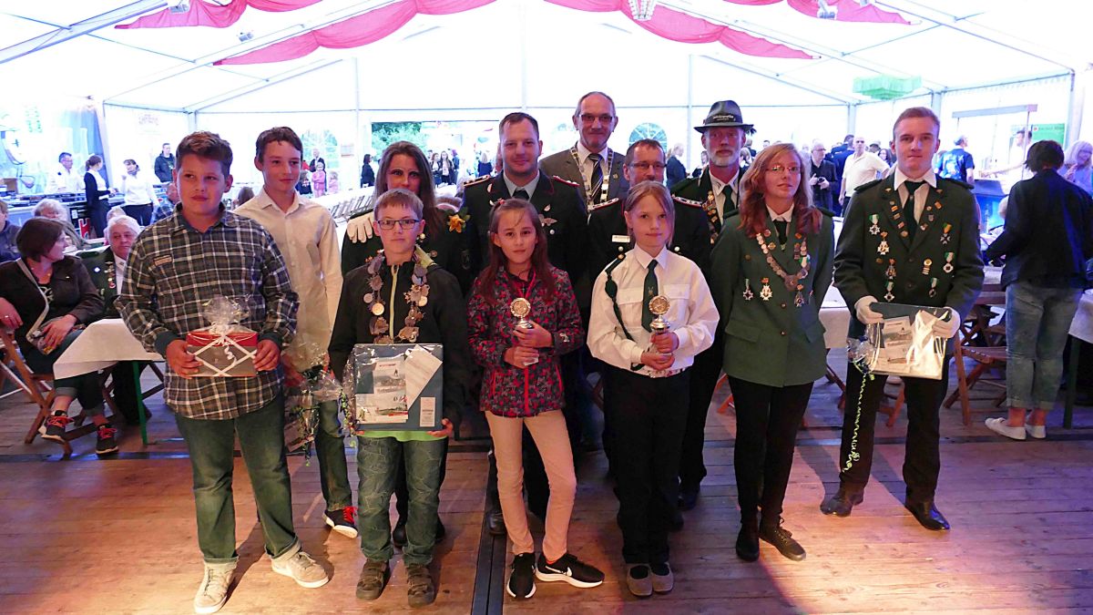 Der Jägercorps Springe von 1897 ehrte durch seinen ersten Vorsitzenden Frank Zipsner seine Könige 2017. Schülerkönigin Tamara Ziehlke, Jugendkönig Jan Kusibor, Juniorenkönigin Mareile Ziehlke, Schützenkönigin Nicole Ziehlke und Schützenkönig Peter Kusibor.