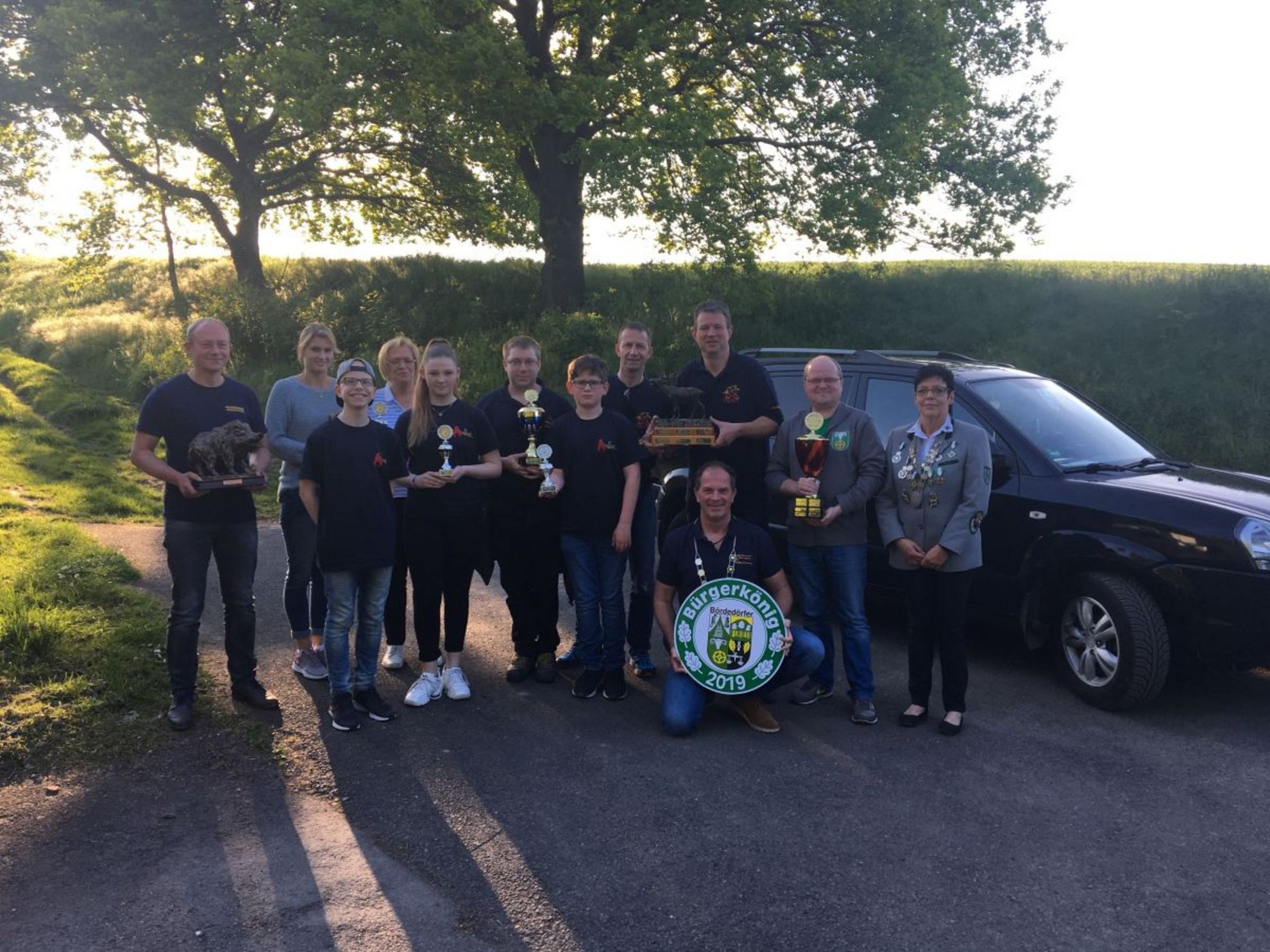 Die Würde des Bürgerkönigs der Bördedörfer trägt in diesem Jahr Christian Klavehn, der sich sehr über die Königsscheibe freute.