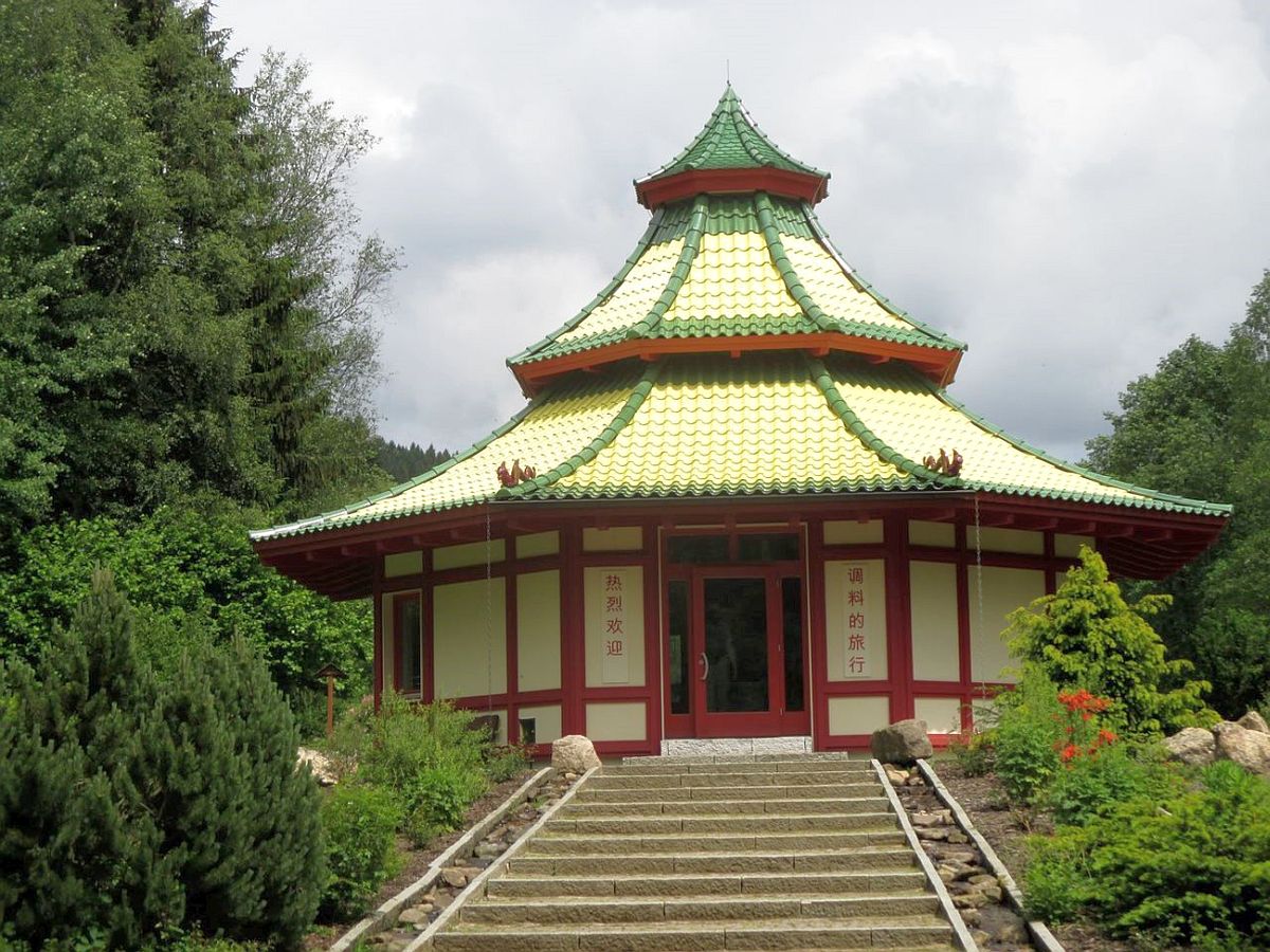 Als Wahrzeichen des Kräuterparks war die Gewürz-Pagode nicht zu übersehen, die nach chinesiÂschem Vorbild in zentraler Lage des Parks erbaut worden war. Im InnenÂÂraum der Pagode konnte man eine sehr große Zahl von Gewürzarten bestaunen. Anhand übersichtlicher SchauÂtafeln erfuhren die Besucher WissensÂwertes über die HerÂkunft und HeilÂwirkung der GeÂwürze und ihre VerÂwenÂdung in der Küche. Außerdem waren zahlÂreiche Bilddokumente zur Geschichte des Gewürzhandels in der Pagode zu besichtigen. Dargestellt wurden histoÂrische GeÂwürzrouten auf dem Seewege nach Indien sowie auf dem Landwege entlang der Seidenstraße und der WeihrauchÂstraße.