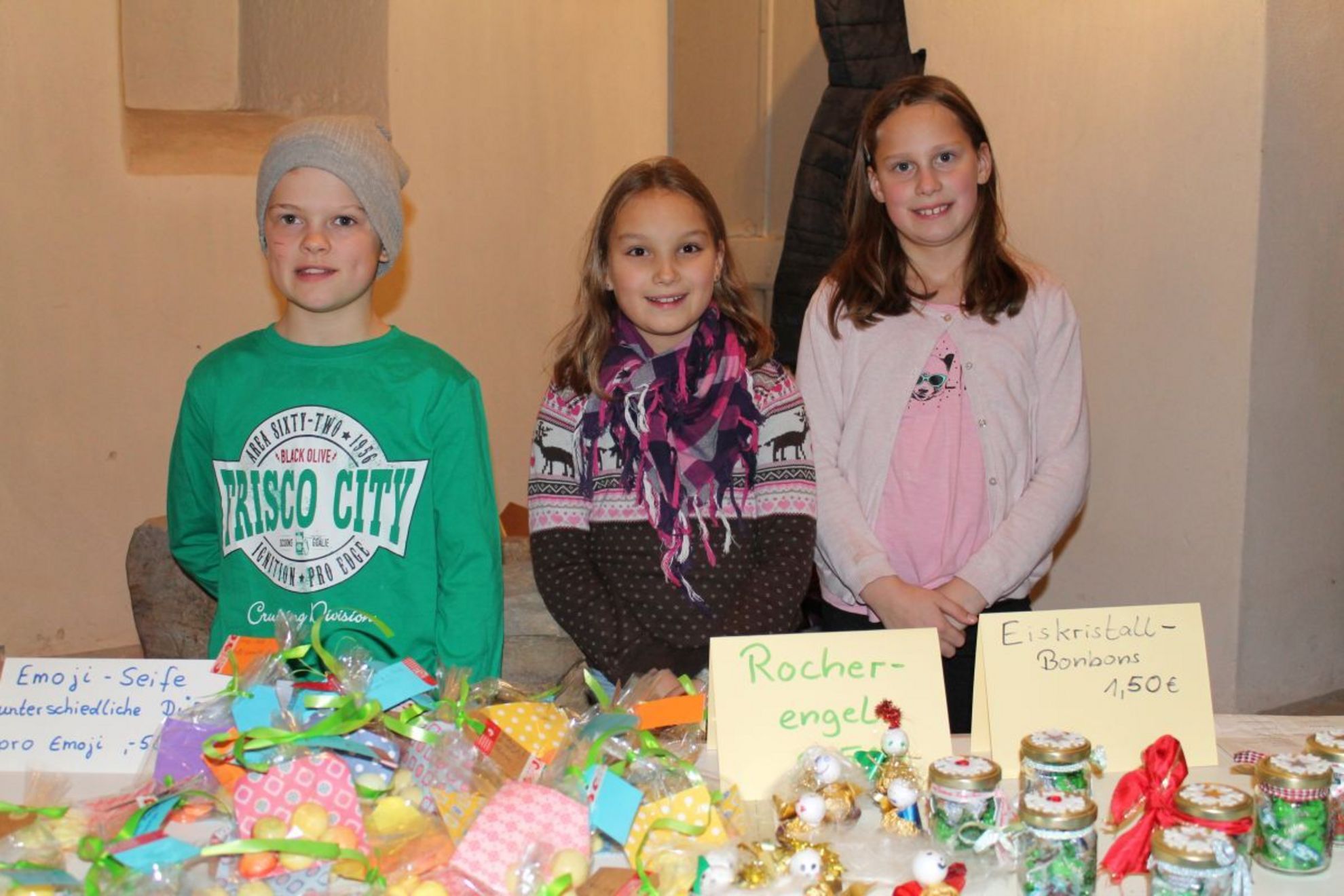 Der Weihnachtsmarkt in Eldagsen zog heute bereits jede Menge Besucher an und das, obwohl es fast durchgehend regnete. Es gab viel zu sehen, zu staunen und zu erleben. So war zum Beispiel der Weihnachtsmann mit seinem großen Sack unterwegs und die Landfrauen versorgten die Besucher mit Kaffee und Kuchen. Einige Kinder der Hallermundt Grundschule, wie der 10-jährige Phil, Anna und Lara-Sophie, beide 9 Jahre, verkauften selbstgemachte Emoji Seife. Diese hatten sie eigens unter Schirmherrschaft des Fördervereins im Unterricht hergestellt. Weiter gab es die Möglichkeit, Stockbrot zu backen und am Glücksrad zu drehen. Auch das leibliche Wohl kam nicht zu kurz, es gab einiges an Leckereien. Die Montagsfrauen des Montags-Handarbeitskreises im Pfarrhaus der Kirche ließen wissen "Wir stricken sogar im Schlaf" und präsentierten zahlreiche, wunderschöne "Werke". Morgen geht es weiter im Programm, vorbeischauen lohnt sich auf jeden Fall. Veranstalter ist der Ortsrat Eldagsen gemeinsam mit dem Förderverein "Für Eldagsen".