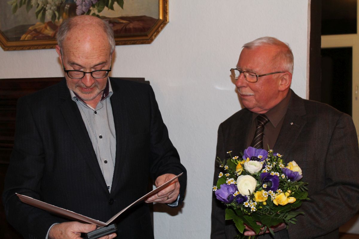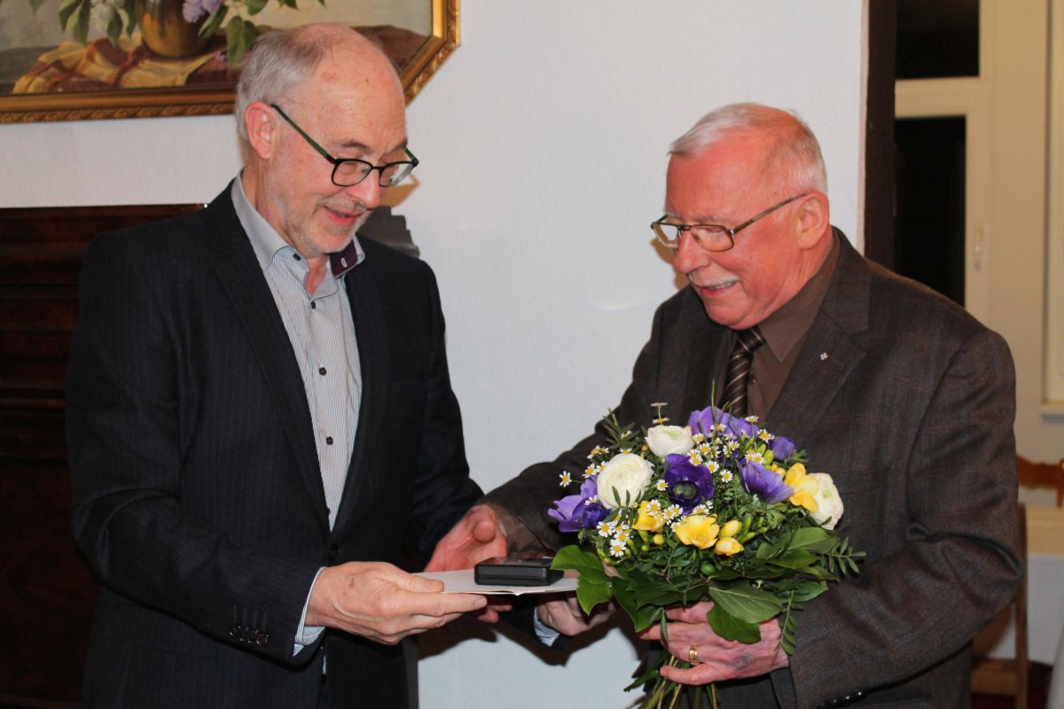 Einen ganz besonderen Ehrentag feierte Thomas John. Für stolze 40 Jahre Mitgliedschaft überreichte ihm Nagel nicht nur eine Urkunde und einen Blumenstrauß, sondern auch die begehrte Theodor-Heuss Medaille.