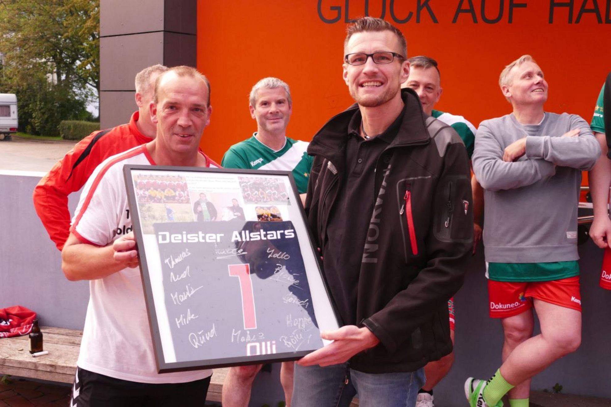 Nach dem Spiel verabschiedete die Mannschaft dann die Allstarkameraden, die das Team zum Sommer diesen Jahres verlassen haben. Torwart Oliver Beggel und Teamchef Jupp Beckmann wurden unter dem Applaus der zahlreichen Zuschauer sowie offenkundigen Emotionen verabschiedet.