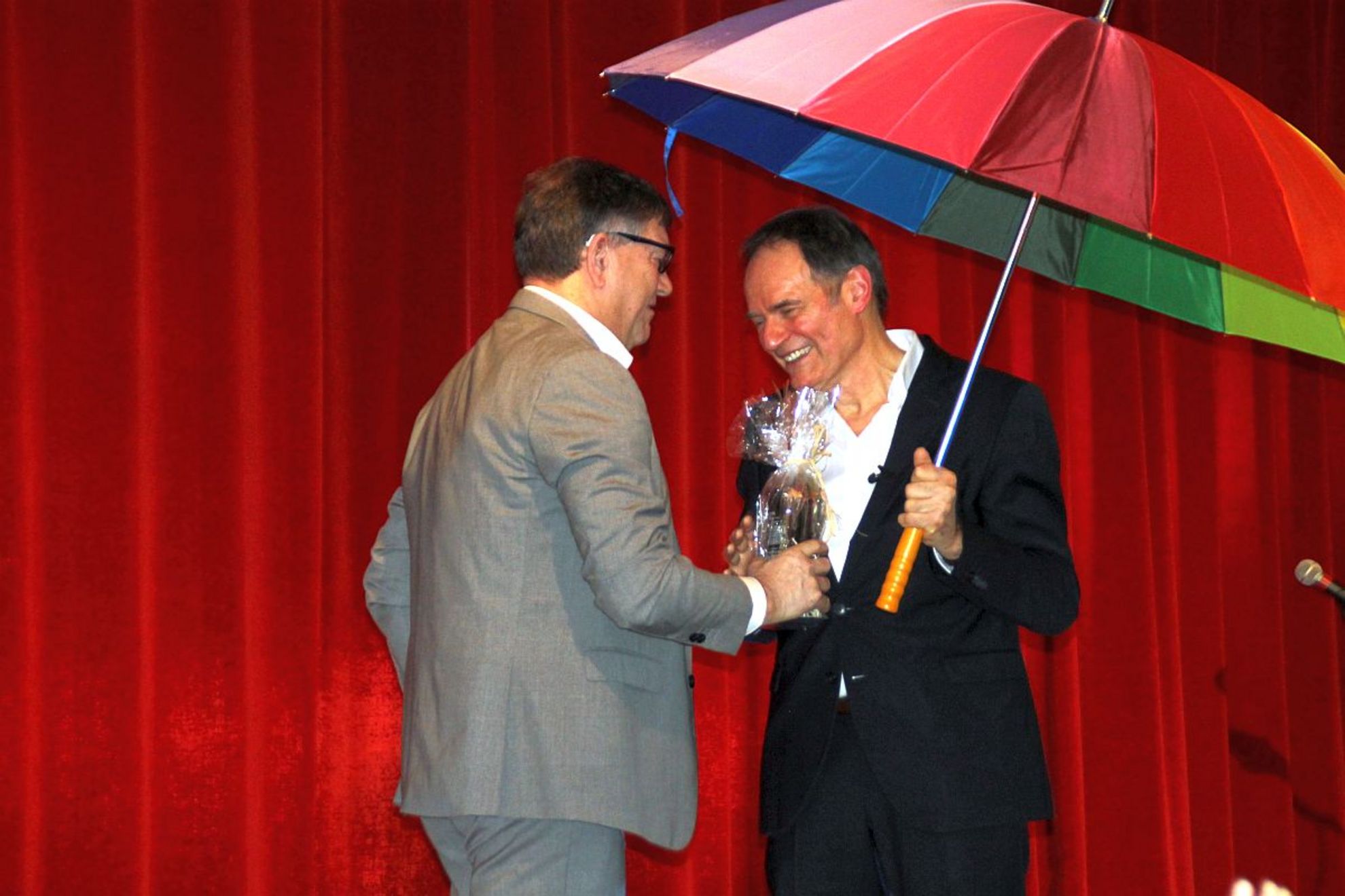 Passend zur Leidenschaft des gehenden Schulleiters stand die Musik bei der Verabschiedungsfeier im Vordergrund. Mit Auftritten vom Gaußorchester, der Band MimiRimini und einer Tanzeinlage von Liridon Przha und Justin Zebedies wurde der Nachmittag gestaltet.