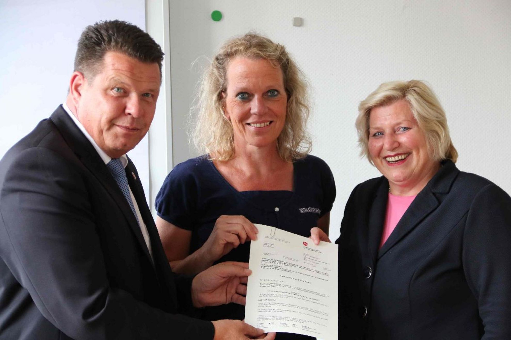 Gern gesehener Gast im Gehrdener Rathaus mit Geld im Gepäck: Die Niedersächsische Sozialministerin Cornelia Rundt überreichte persönlich einen Förderbescheid für die Gehrdener Sozialstation bei ihrer kurzen Stippvisite an Bürgermeister Cord Mittendorf. „Mit 7.593,65 Euro ist es nur ein kleiner Betrag, aber wir fördern ein hochinteressantes und einzigartiges Projekt“, sagte Cornelia Rundt.