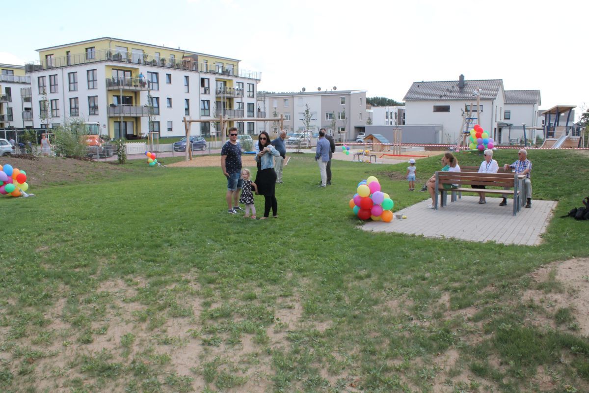 Das neue Baugebiet ist mit der Einweihung des Spielplatzes nun so gut wie fertig, die verbleibenden Arbeiten werden im September abgeschlossen. "2014 haben wir den Zuschlag erhalten. Es wurde im Trichter gebaut - wer hierher zieht, braucht das Wohngebiet eigentlich nicht mehr zu verlassen. Es gibt sowohl ein betreutetes Wohnen als auch ein Altenheim," erklärt Glaser.