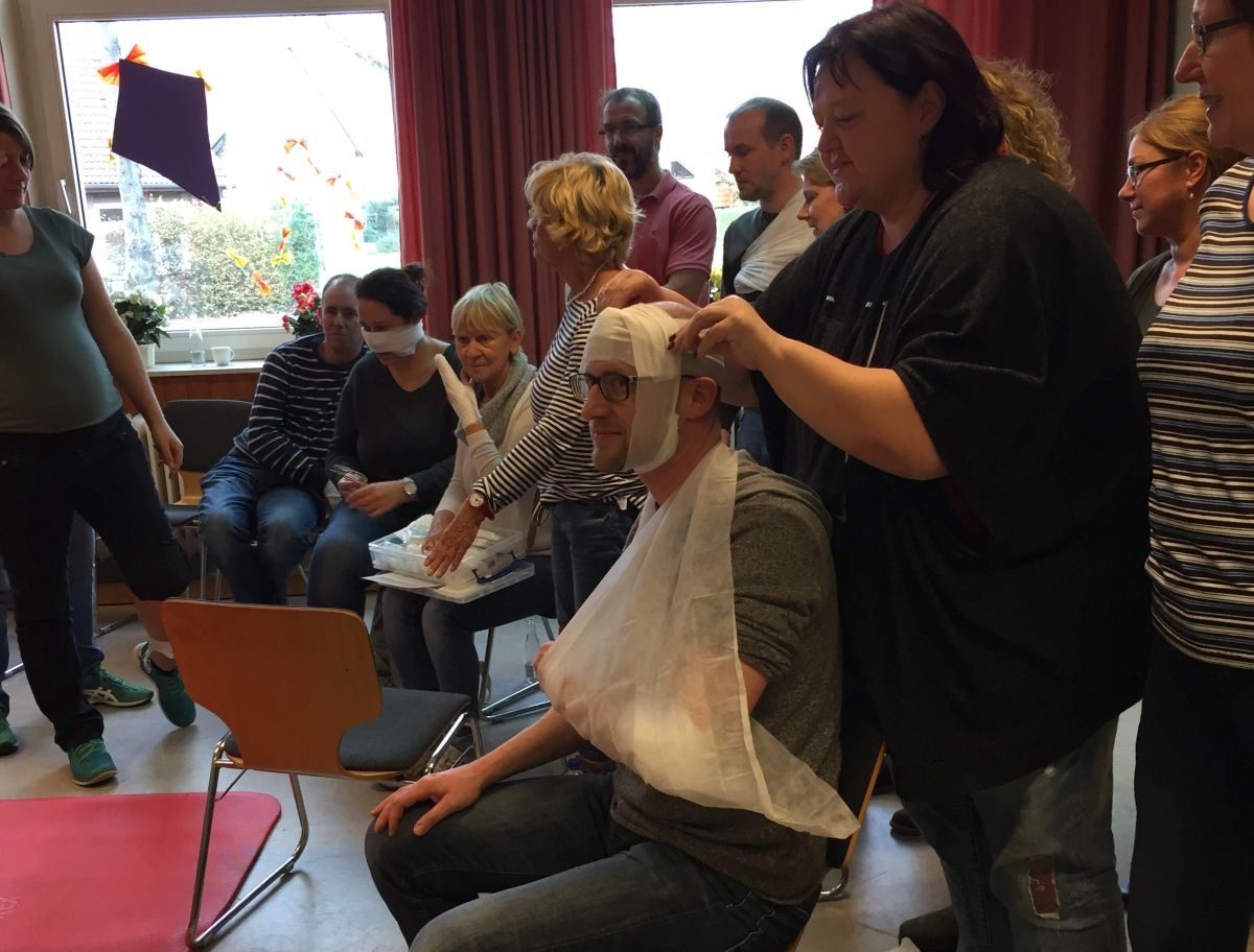 Kürzlich fand der erste „Erste Hilfe am Kind“ Kurs im Dorfgemeinschaftshaus in Redderse statt. Vom DRK Ortsverein Redderse organisiert, konnten die 14 Teilnehmer aktiv wichtige Hilfsmaßnahmen bei Notfällen im Säuglings- und Kindesalter üben. Die Teilnehmergruppe war bunt gemischt: Tagesmütter, junge Mädchen, die sich als Babysitter qualifizieren möchten, Mütter, Väter und auch Großeltern, die mit der Betreuung der Enkelkinder betraut sind. Alle waren sich nach den sieben Stunden einig, dass sich ihr Einsatz gelohnt hat um für den Fall der Fälle sensibilisiert zu sein.