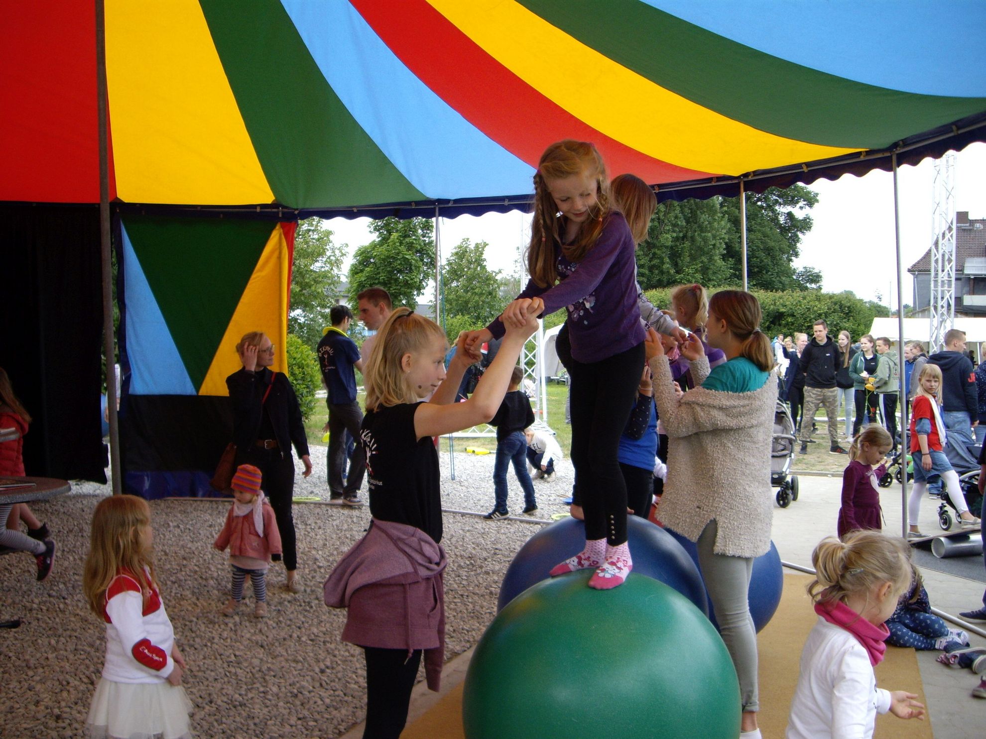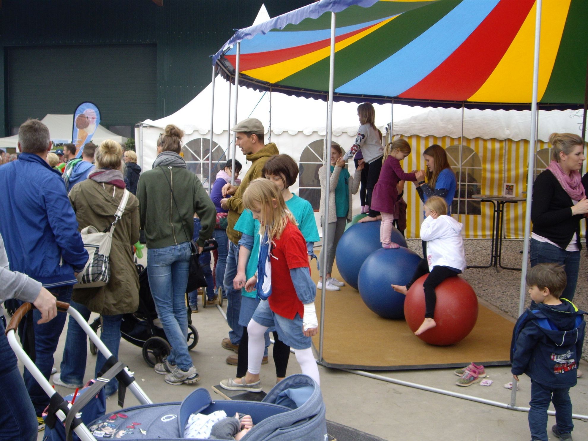 Klar stehen beim 5. Erdbeerfest auf Sanders Landhof in Gestorf die kleinen, süßen Früchtchen im Vordergrund - ob als Obst, Erdbeerkuchen oder zu leckeren Getränken verarbeitet. Aber auch das Rahmenprogramm auf dem weitläufigen Hofgelände ist wieder beeindruckend: Die jüngsten Besucher toben auf Strohburgen, werden für wenig Geld auf dem Kinderflohmarkt fündig oder versuchen sich am großen Kletterturm, in der Mittelalter-Ecke oder beim Waterball. Eine besondere Attraktion ist der Mitmach-Zirkus: Gestern bereits versuchten sich viele Kinder als Jongleure oder Akrobaten, heute finden gleich mehrere Zirkus-Veranstaltungen vom Kinderzirkus Bikonelli statt. Und auch heute werden die Kleinen wieder zum Mitmachen aufgefordert.