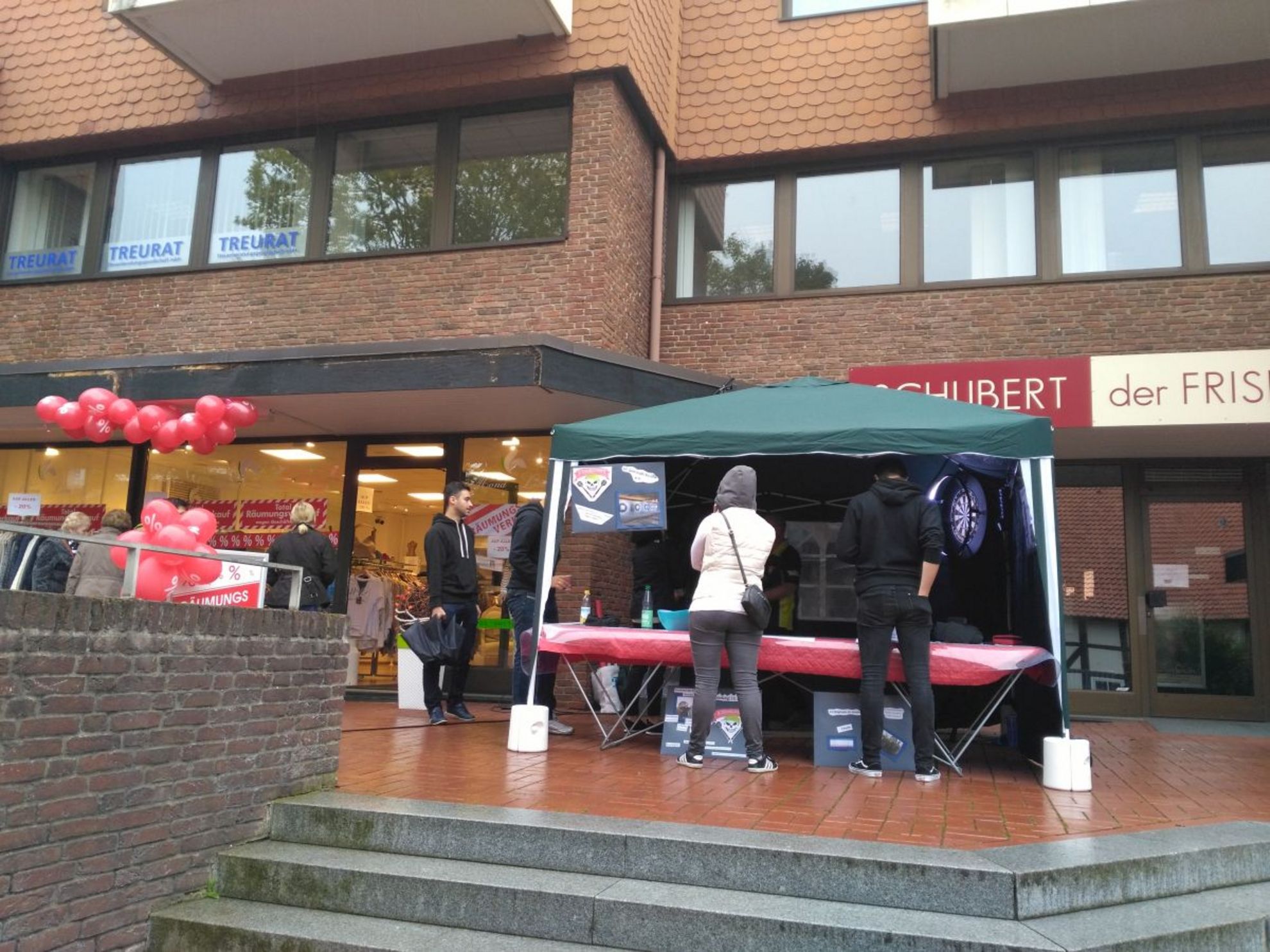 Am Sonntag ging es dann bereits zur Mittagszeit mit dem Aufbau des Pavillons für den Tag der Ortsteile weiter. Marius Dau, Denny Steuer, René Hernando, Luca Doering, Tobias Stichtenoth und Fabian Reinert stellten einen tollen Infostand mit portablem Dartboard auf die Beine und luden die Barsinghäuser Bürger zum Probewerfen ein. Zusätzlich wurden die jeweils geworfenen Darts zusammengezählt und notiert. Für die besten drei Werfer gab es Preise. Den besten Score konnte Holger Peschke mit 85 Punkten erzielen. Er gewinnt damit den Hauptpreis - 6 Monate kostenloses Training bei den Dartskulls. Platz zwei ging mit 84 Punkten an Matthias Zimmermann. Hierfür gibt es drei Monate kostenloses Training. Platz drei und einen Monat gewinnt die erst zehnjährige Ina mit 81 Punkten. Leider haben wir von Ina keine Kontaktdaten. Falls jemand Ina kennt würden wir uns freuen wenn ein Kontakt hergestellt werden könnte. Einen herzlichen Glückwunsch an alle Gewinner. Insgesamt bleibt zu sagen das die Aktion ein voller Erfolg war. Es wurden viele interessante Gespräche geführt und man konnte einmal präsentieren, was Dart für ein schöner Sport ist.