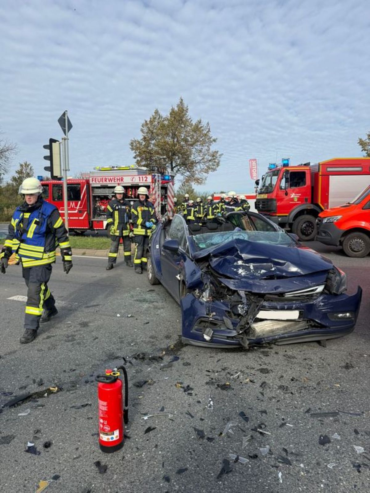 Vor Ort waren zwei Pkw frontal ineinander gefahren, dabei wurde eine Person eingeklemmt.
