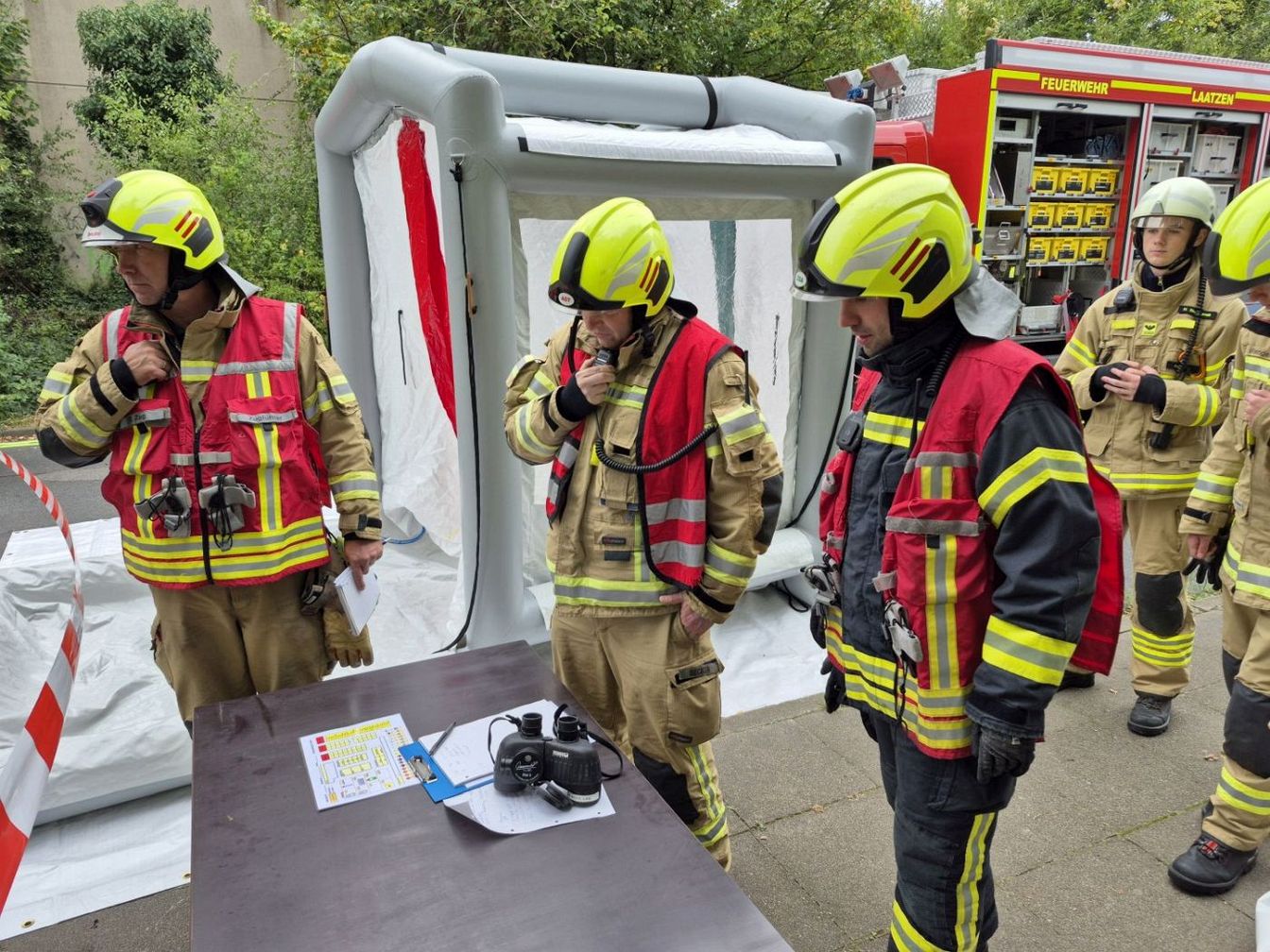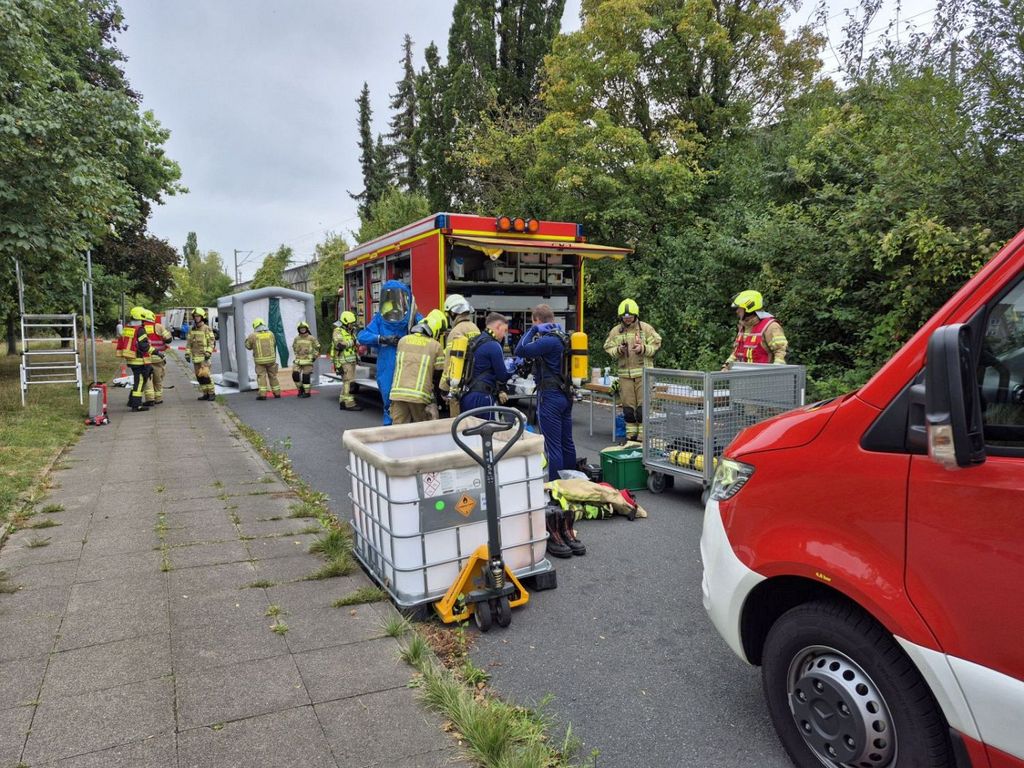 Laatzen. Feuerwehrfahrzeuge, Schutzanzüge und jede Menge Fachwissen: Mit einer großen Abschlussübung hat die Stadtfeuerwehr Laatzen am Samstag (13. September) ihr diesjähriges Gefahrgutseminar beendet..