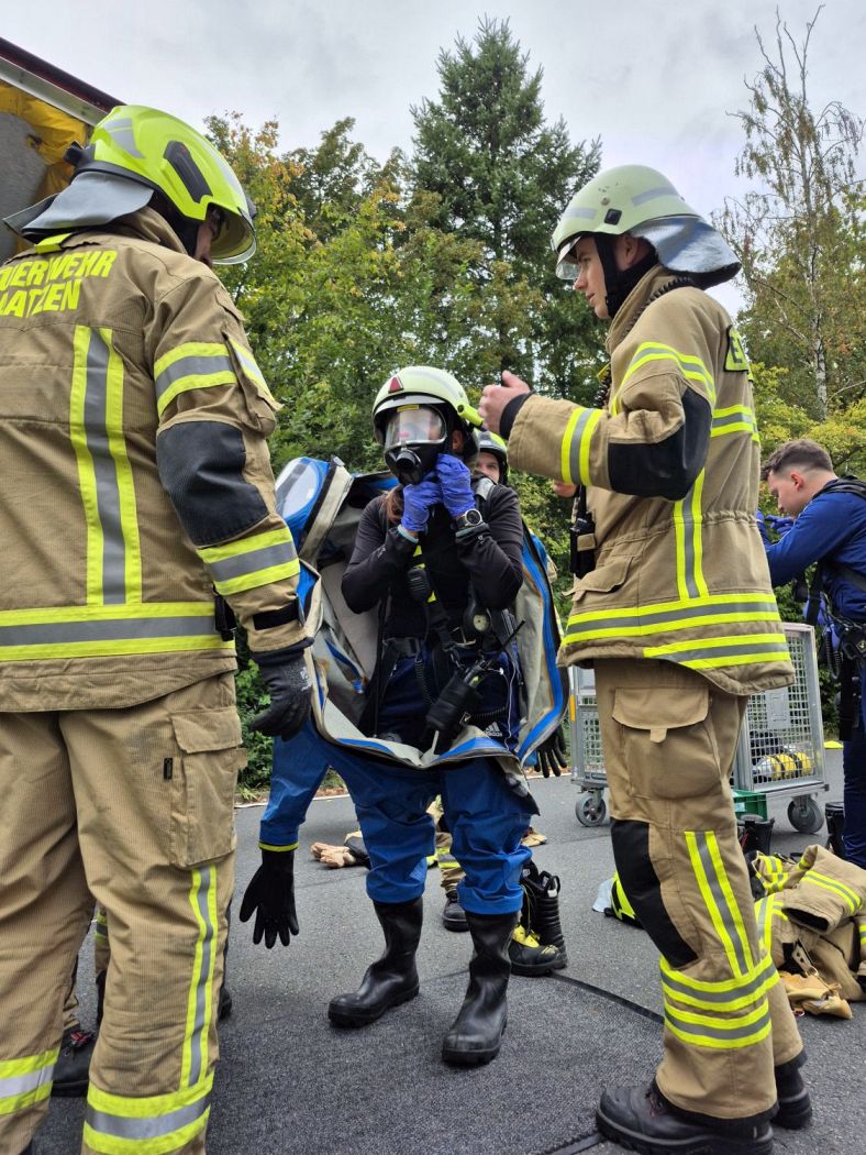 Besonders eindrucksvoll waren die praktischen Übungen: Mit Atemschutz unter Chemikalienschutzanzug (CSA) und bei simulierten Gefahrenszenarien konnten die Feuerwehrkräfte das Gelernte direkt anwenden. „Ein anspruchsvolles, interessantes und gut ausgearbeitetes Seminar, bei dem Teamwork für die Abarbeitung des Einsatzes sehr wichtig ist.“, sagte Teilnehmer Yannic Fuchs nach der Übungspraxis.