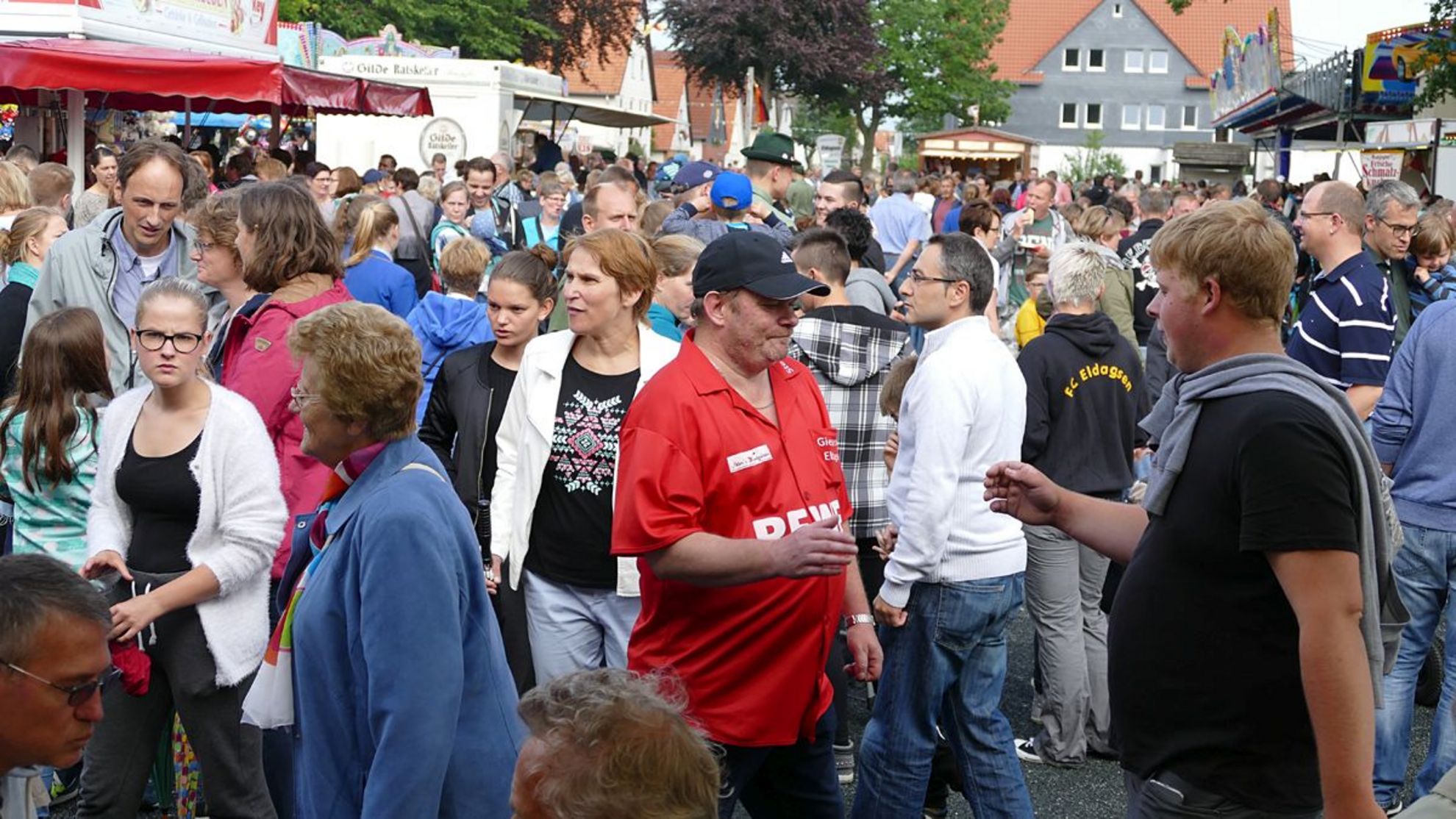 Das muss der Stadt Eldagsen erst einmal einer nachmachen: Dieser Festumzug ist eine Wucht, er sucht seinesgleichen. Er ist nicht nur außergewöhnlich lang, nein, er ist auch mit ausgefallenen Ideen bestückt und viele Vereine der Stadt und der Region sind mit dabei, um ihre Referenz zu bezeugen, unterstützt von tausenden Gästen aus nah und fern. Alle machen mit, dazu kommt eine riesige Portion Heiterkeit und gute Laune. Natürlich machten die heutigen paar Regentropfen den Teilnehmern und Besuchern nichts aus, sie wurden einfach "weggewischt" und die auf der bunt geschmückten Strecke am Straßenrand standen, feierten natürlich mit, auf eigens mitgebrachten Klappstühlen oder Bierkästen.
