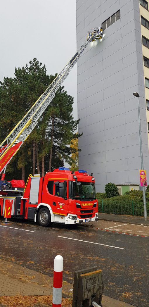 Barsinghausen. Der Herbststurm „Detlef“ hat am Samstagvormittag in Barsinghausen für gleich zwei Feuerwehreinsätze gesorgt. Besonders betroffen war die Rehrbrinkstraße am sogenannten „Sticher-Hochhaus“. Dort hatten sich Dämmplatten von der Fassade gelöst. Eine der Platten riss ab und beschädigte einen Müllcontainer auf dem Gehweg. Glücklicherweise befand sich in diesem Moment kein Fußgänger in der Gefahrenzone..