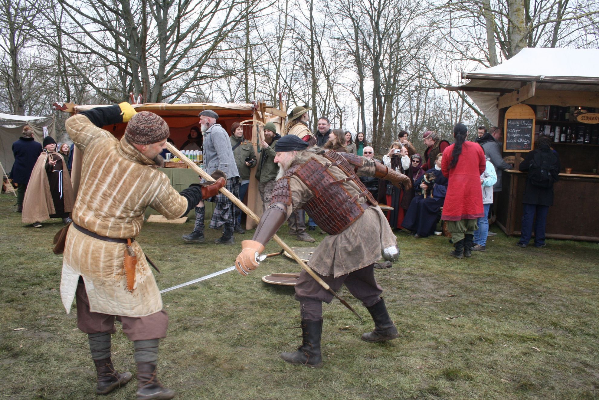Seit gestern Mittag hat das Nordische Marktvolk im Arnumer Freibad seine Zelte aufgeschlagen und lädt mit Handwerksständen, traditioneller Musik, Schaukämpfen und vielen Mitmach-Aktionen zu einer aufregenden Reise ins Mittelalter. Dieses Jahr erstmals dabei: Eine große Feuershow, die bereits gestern und auch heute Abend ab 20.30 Uhr das Publikum zum Staunen bringen wird. Faxe, der wieder gemeinsam mit dem Verein Power das Fest ausrichtet, ist bester Dinge: "Die Anzahl unserer Heerlager hat sich gegenüber dem letzten Jahr von acht auf 23 gesteigert, und rund 40 verschiedene Stände sind dabei. Wir freuen uns, dass sich die Besucher von der kühlen Witterung nicht abschrecken lassen - und wir sind sowieso richtig angezogen."