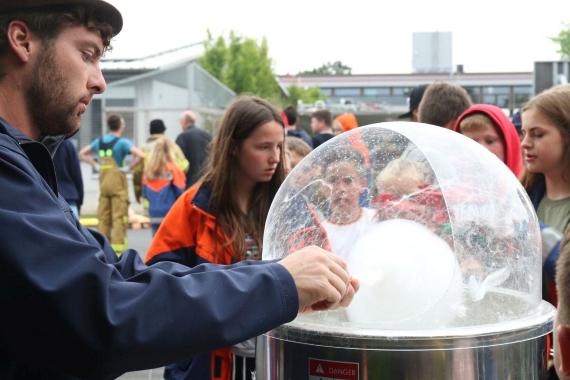 Aufgrund der anhaltenden Wetterlage entschieden die Organisatoren das Bocciatournier am Donnerstag in die Halle zu verlegen, was die Schwierigkeit noch einmal etwas in die Höhe getrieben hat, da auf dem ebenen Hallenboden die Kugeln mit sehr viel Geschick gespielt werden mussten. Weiterhin wurden Gräben ausgehoben, Brücken gebaut und Wasser abgepumpt. Die für Mittwoch geplante Lagerhochzeit der Bördedörfer konnte am Donnerstag in einer kleinen Regenpause nachgeholt werden. Die Betreuer Jendrick und Hendrik gaben sich das Ja-Wort für die Dauer des Zeltlagers. Zu allem Überfluss wurde auch noch vergessen bei dem ganzen Trubel die Blaulichtflüssigkeit des Bördedörfer-Blaulichtmastens aufzufüllen. Die aufkommende Hektik führte zu einer Leckage in der Blaulichtflüssigkeitsaufbewahrungsflasche, welche zu einem Gefahrguteinsatz führte. Konzentriert und doch unter Zeitdruck musste das Gefäß sicher transportiert werden, da man nicht riskieren konnte, dass das Blaulicht zu einem Gelblicht wurde.