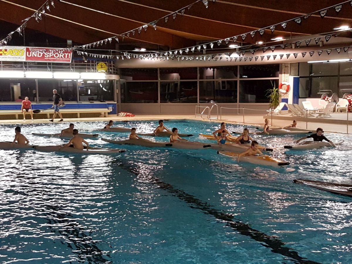 Am Samstag Abend hat der Calenberger Canoe Club (CCC) im Deisterbad ein Schnuppertraining Kanu/ Kanupolo für interessierte Kinder angeboten. Es waren gute 20 Kinder, die das Angebot genutzt haben, erste Erfahrungen in den Kanupolobooten mit Paddel und Ball zusammeln. Betreut wurden sie von einem Trainerteam des CCC unter Leitung von Björn Wende und von den Jugendlichen des CCC.