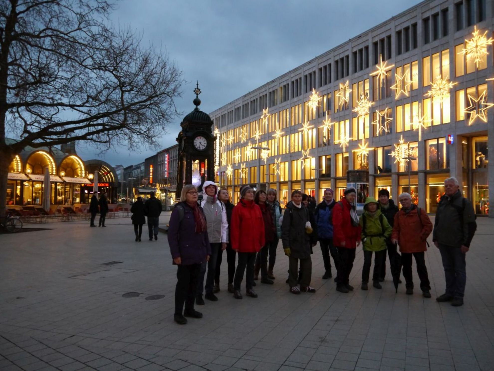 Allmählich verschwand die Sonne am Horizont und es ging entlang des Maschsees und am neuen Rathaus vorbei zur noch festlich erleuchteten Innenstand am Kröpcke. Bis zur Abfahrt der S-Bahn ließen die Wandersleute nochmals diesen tollen Neujahrstag revue passieren. Trotz der Wetterkapriolen in diesem norddeutschen Winter mit Regen, Schnee und nochmals Regen, fast gar keinem Sonnenschein, wirklich keinem sonderlich einladenden Outdoorwetter - aber ausgerechnet am Neujahrstag werden die Kneippfreunde von der Natur belohnt.